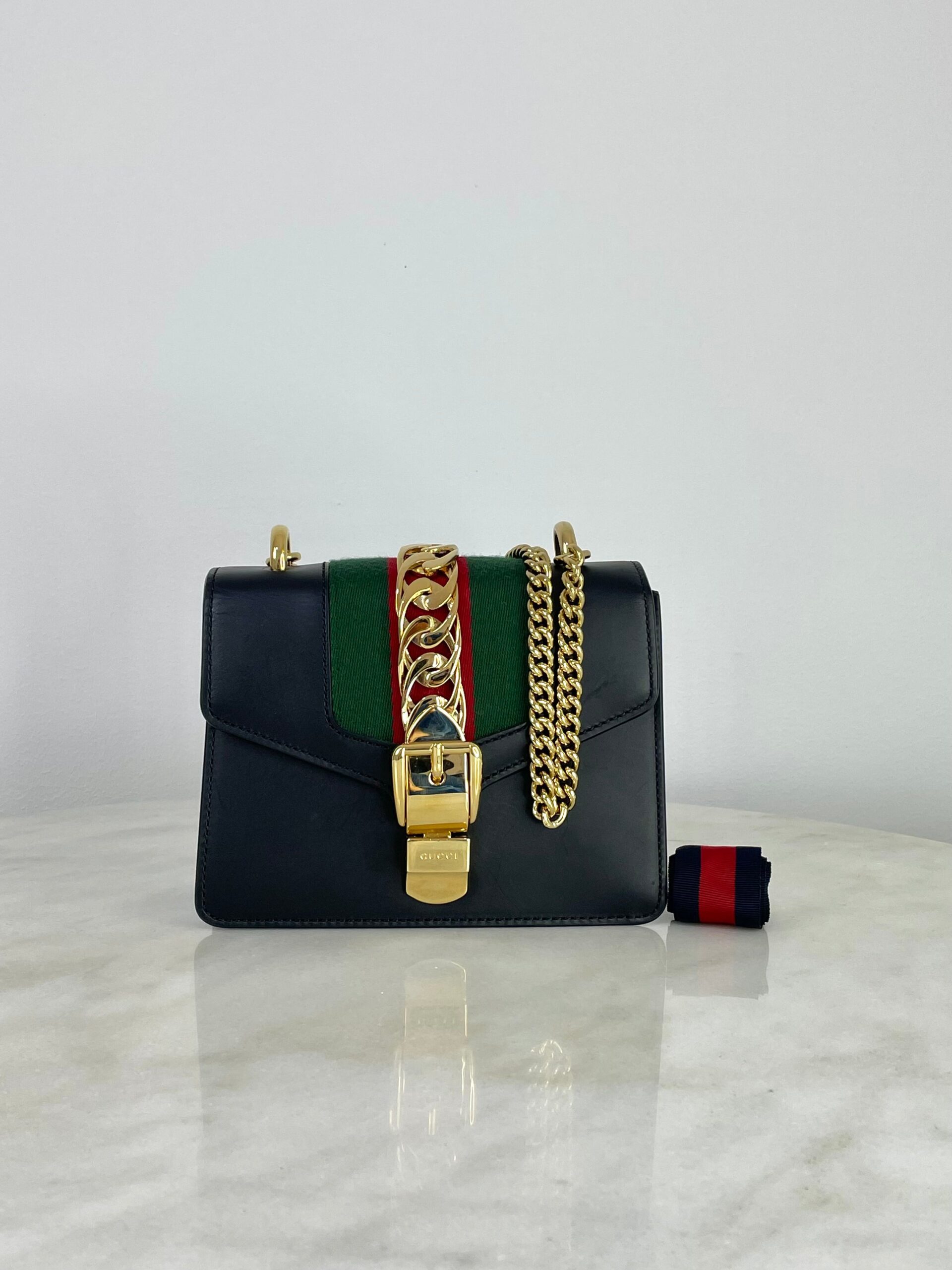 Gucci Black Web Ophidia Sylvie Mini Bag W/ Chain