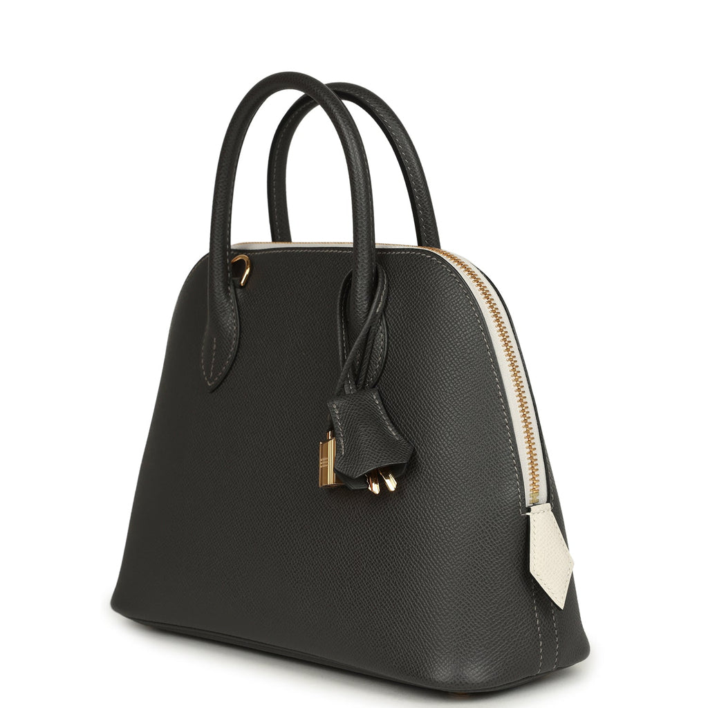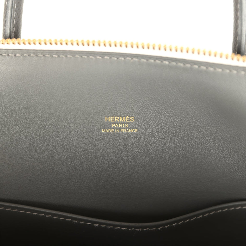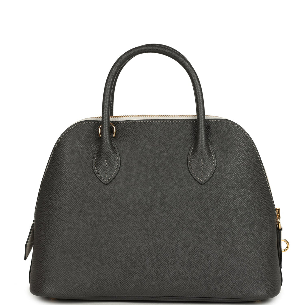 Hermes 1923 Bolide 25 Graphite and Gris Pale Epsom Gold Hardware Shop for an authentic Hermes 1923 25 Bolide in Bicolor Graphite and Gris Pale epsom with gold hardware in new and never worn condition at Madison Avenue Couture.
