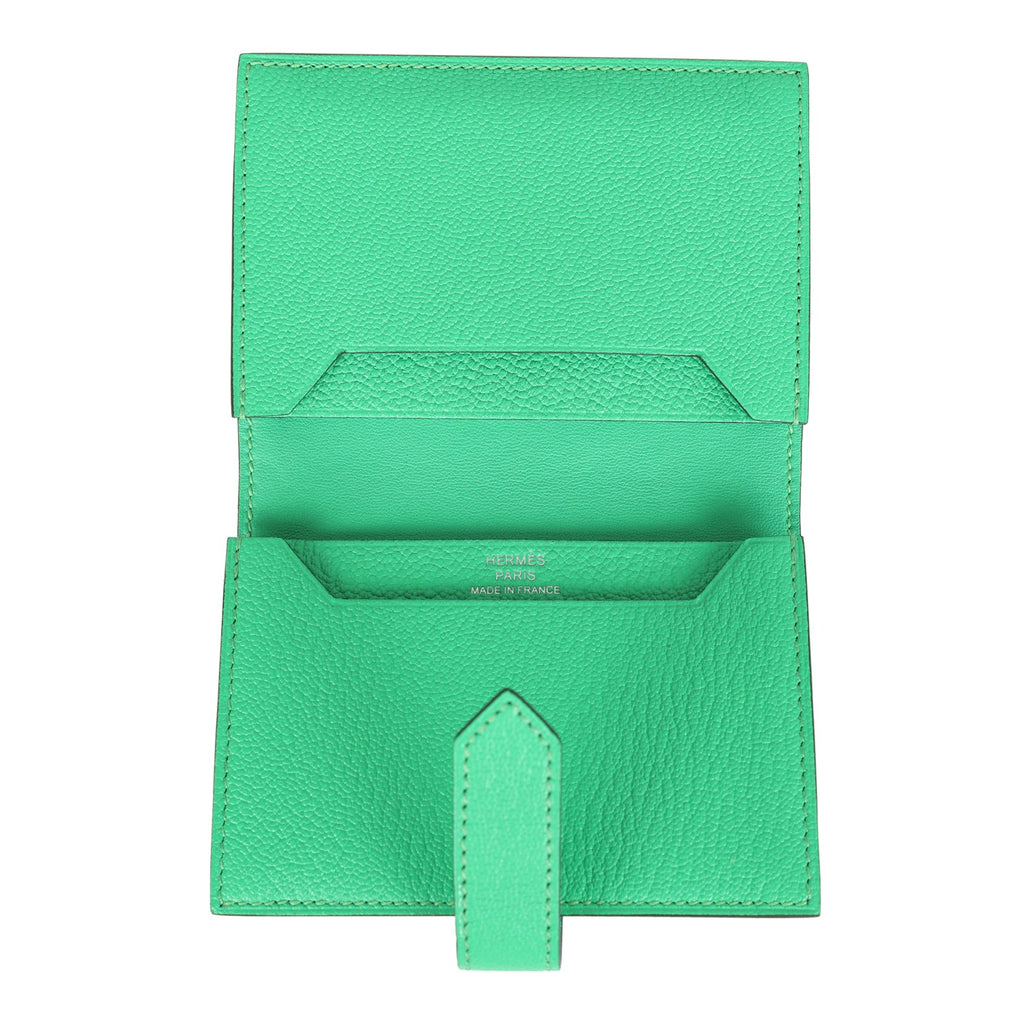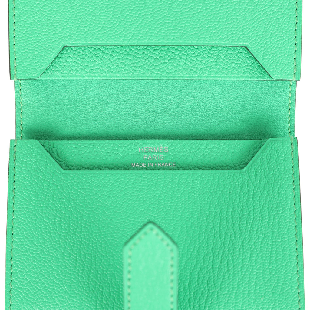 Hermes Bearn Card Holder Vert Comics Chevre Mysore Palladium Hardware Shop for an authentic Hermes Bearn Card Holder in Vert Comics chevre with palladium hardware in new and never worn condition at Madison Avenue Couture.