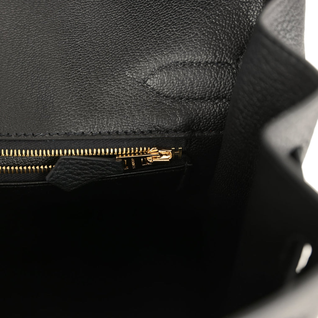 This Birkin is in Black togo leather with permabrass hardware and has tonal stitching, front flap, two straps with center toggle closure, clochette with lock and two keys, and double rolled handles.The interior is lined with Black chevre leather and has one zip pocket with an Hermes engraved zipper pull and an open pocket on the opposite side.Collection: K (2025)Origin: FranceCondition: New and never worn (plastic on hardware)Accompanied by: Hermes box, Hermes dustbag, felt, clochette, lock, two keys, clochette dustbag, carebookMeasurements: 11.75″ width x 9.5″ height x 6″ depth; 4.25″ handle drop
