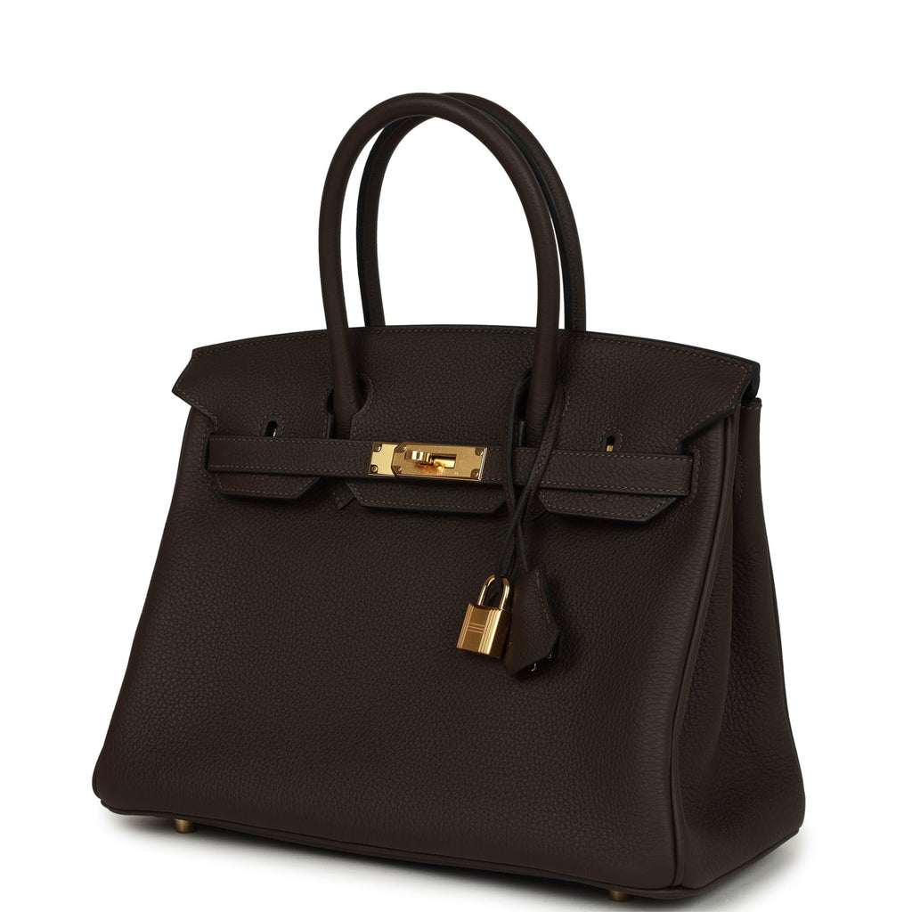 Hermes Birkin 30 Ebene Togo Gold Hardware Shop for an authentic Hermes Birkin 30 in Ebene togo leather with gold hardware in new and never worn condition at Madison Avenue Couture.