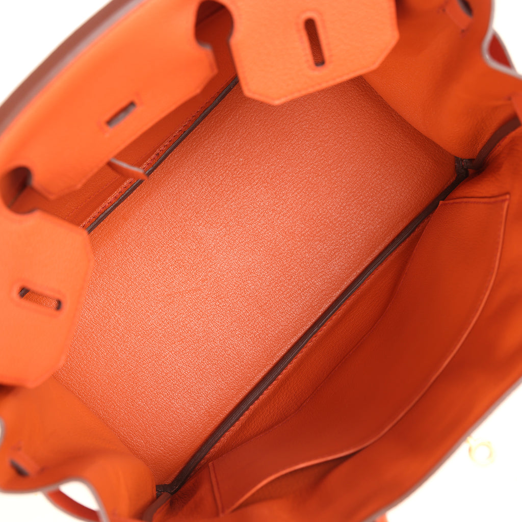 This Birkin is in Terre Battue togo leather with gold hardware and has tonal stitching, front flap, two straps with center toggle closure, clochette with lock and two keys, and double rolled handles.The interior is lined with Terre Battue chevre and has one zip pocket with an Hermes engraved zipper pull and an open pocket on the opposite side.Collection: X (2016)Origin: FranceCondition: Never worn (Plastic on hardware) – There is a very faint scuff to the interior base.Accompanied by: Hermes box (no tissue), Hermes dustbag, clochette, lock, two keys, clochette dustbag, felt, rainhatMeasurements: 11.75″ width x 9.5″ height x 6″ depth; 4.25″ handle drop