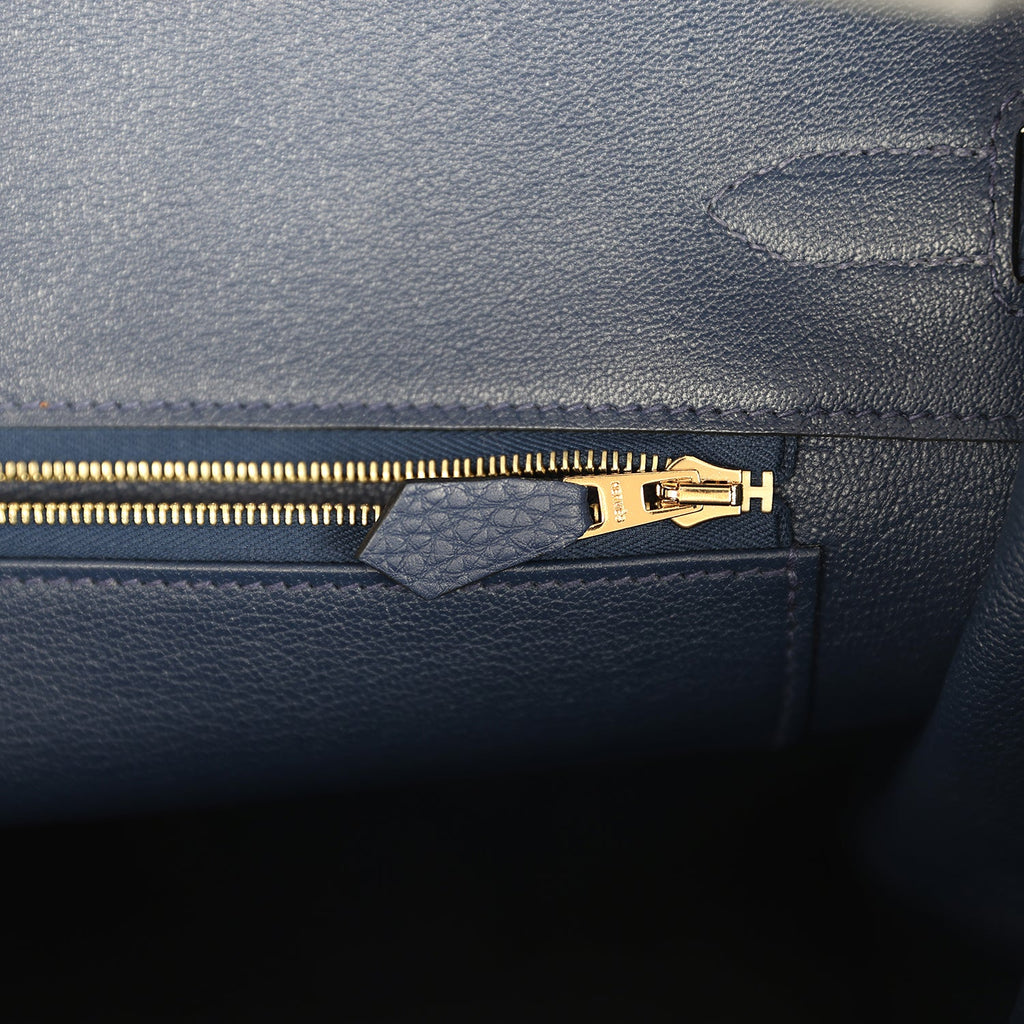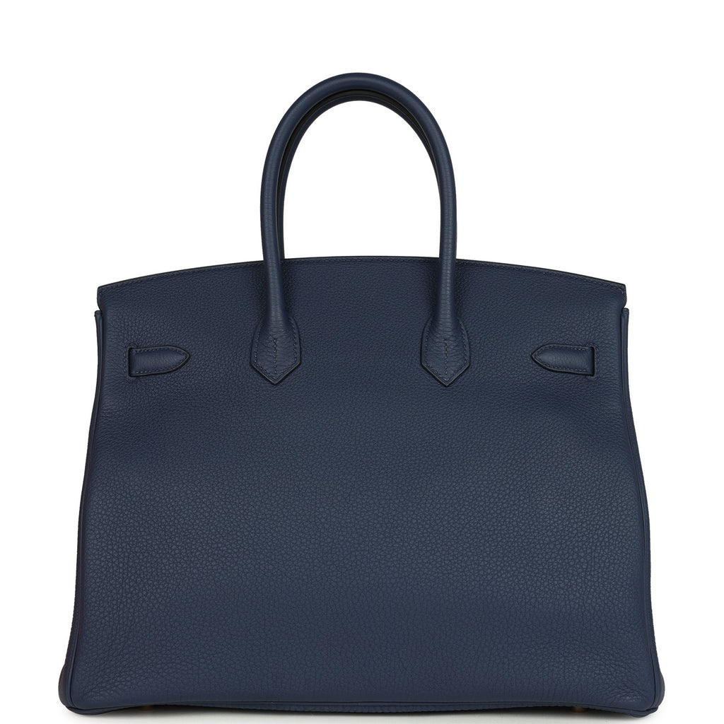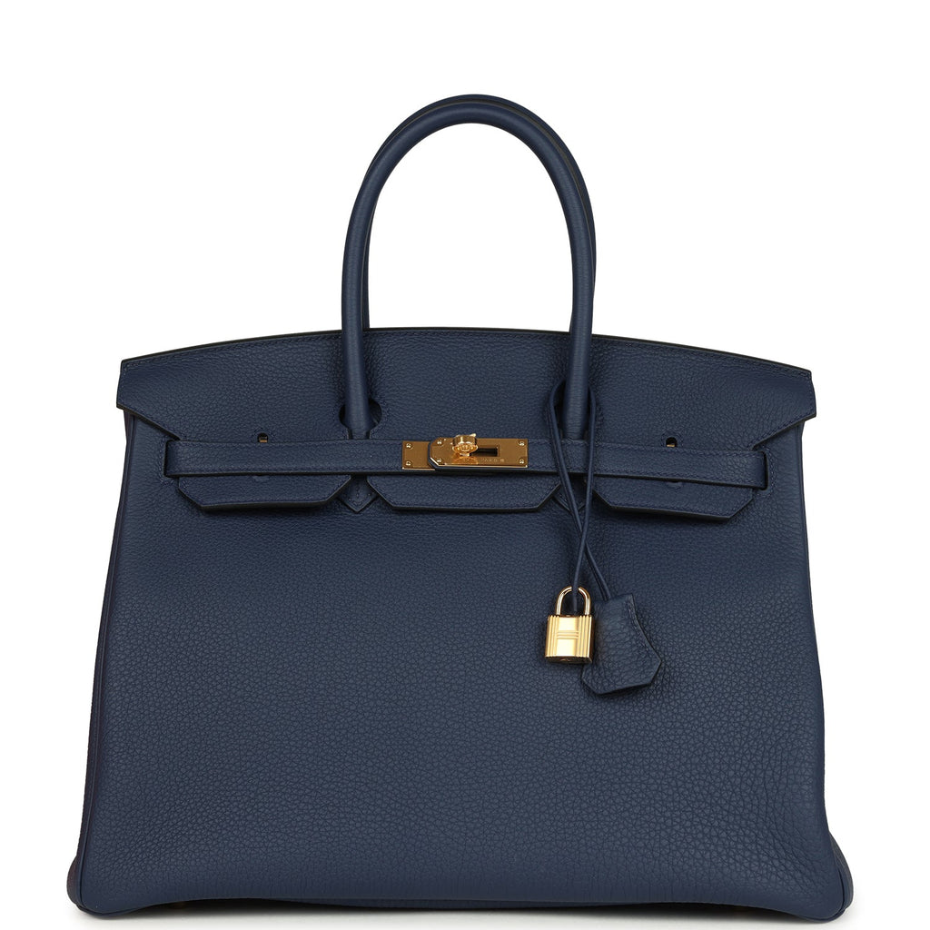 Hermes Birkin 35 Bleu Navy Togo Gold Hardware Shop for an authentic Hermes Birkin 35 in Bleu Navy togo leather with gold hardware in new and never worn condition at Madison Avenue Couture.