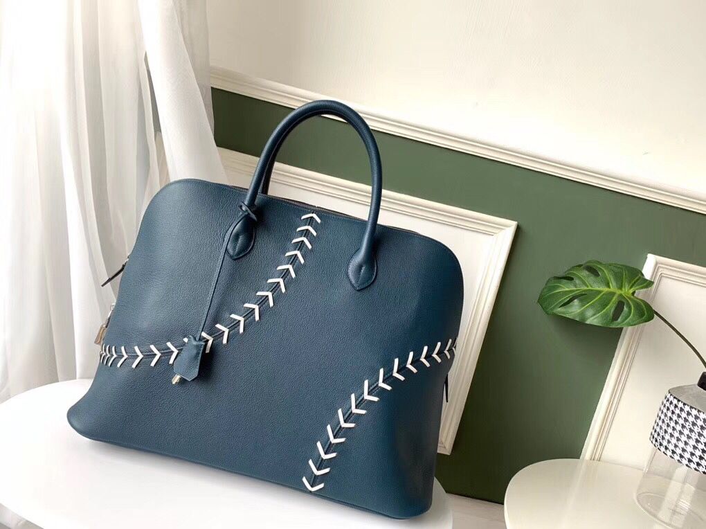 First introduced during the Hermes men’s Spring 2018 Runway show, this Bolide 1923 bag features Baseball stitching and top zipper closure, the size 45 cm makes it perfect Weekend and Travel Bag.