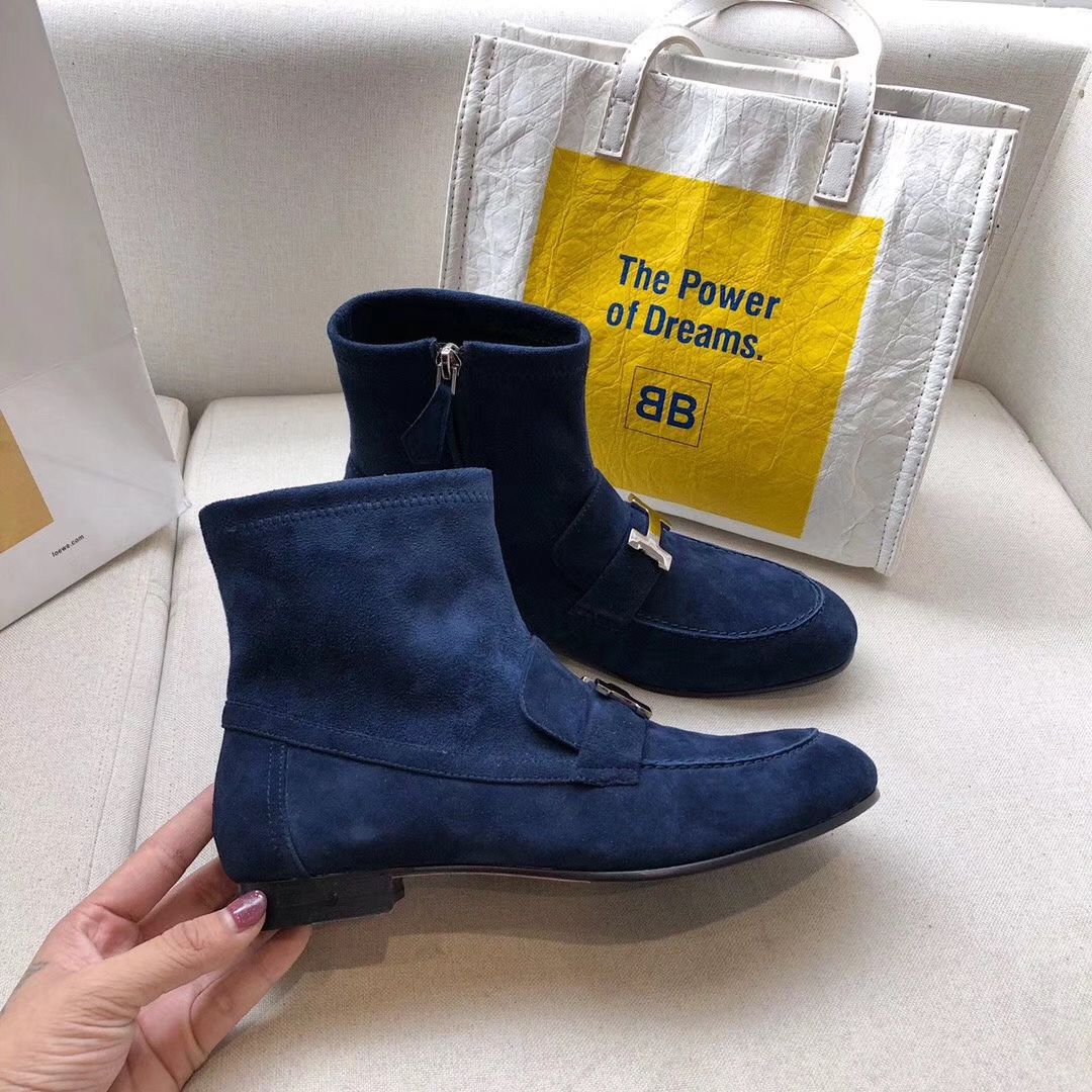 Hermes Blue Saint Honore Ankle Boots