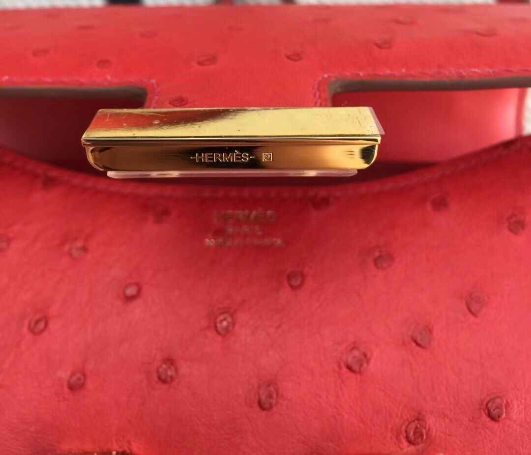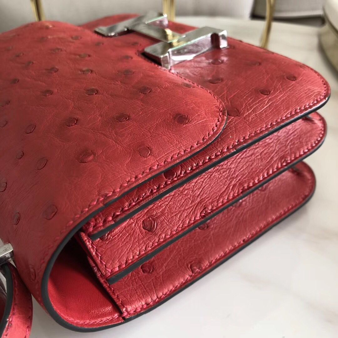 Hermes Constance 18 Handmade Bag In Red Ostrich Leather