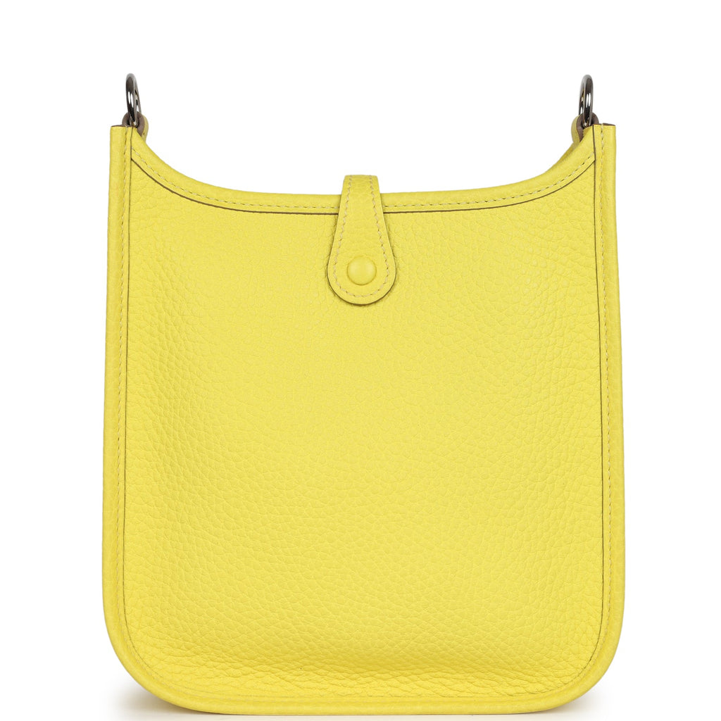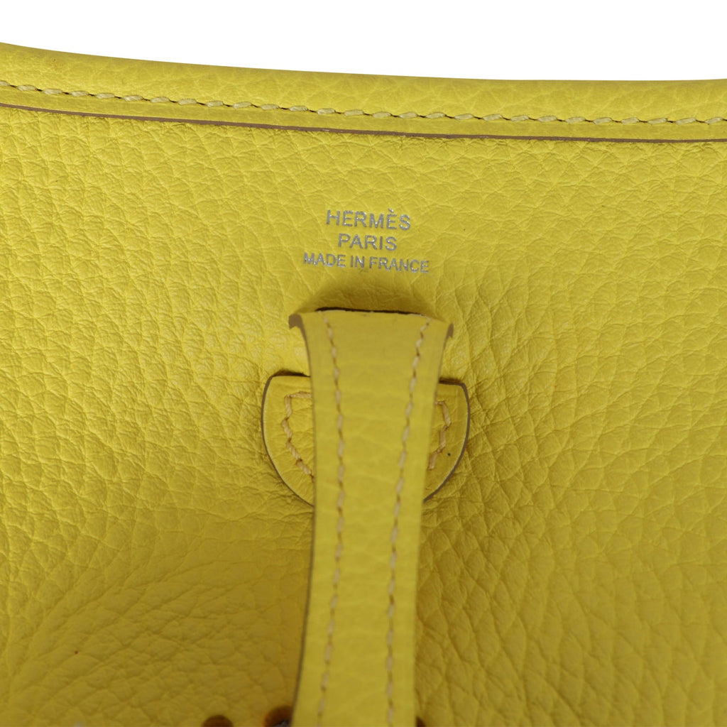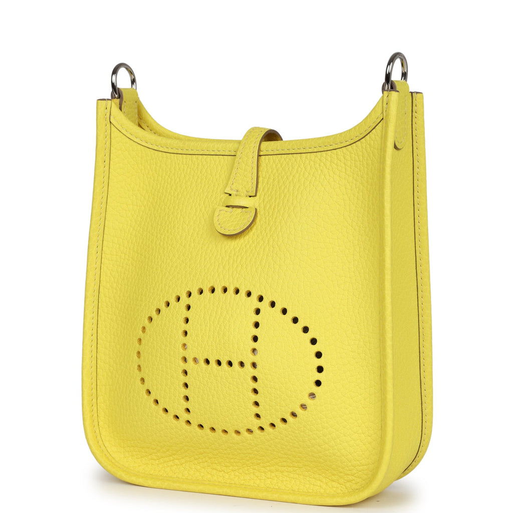 Hermes Evelyne TPM Lime Clemence Palladium Hardware Shop for an authentic Hermes Evelyne TPM in Lime clemence leather with palladium hardware in new and never worn condition at Madison Avenue Couture.