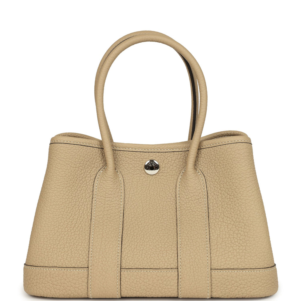 Hermes Garden Party Neo 23 Trench Negonda Palladium Hardware Shop for an authentic Hermes Garden Party Neo 23 in Trench Negonda leather with palladium hardware in new and never worn condition at Madison Avenue Couture.