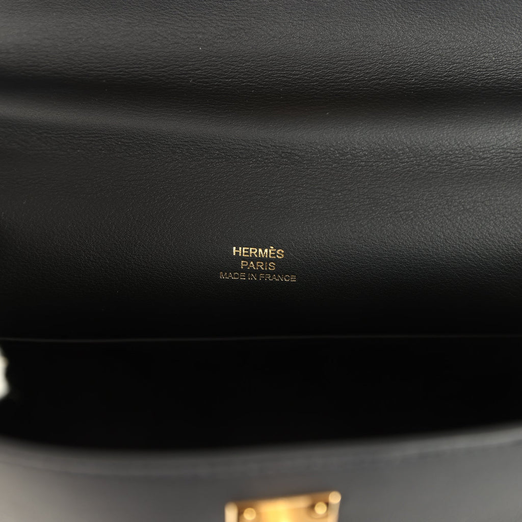 Hermes Kelly Pochette Black Swift Gold Hardware Shop for an authentic Hermes Kelly Pochette of Black swift leather with gold hardware in new and never worn condition at Madison Avenue Couture.