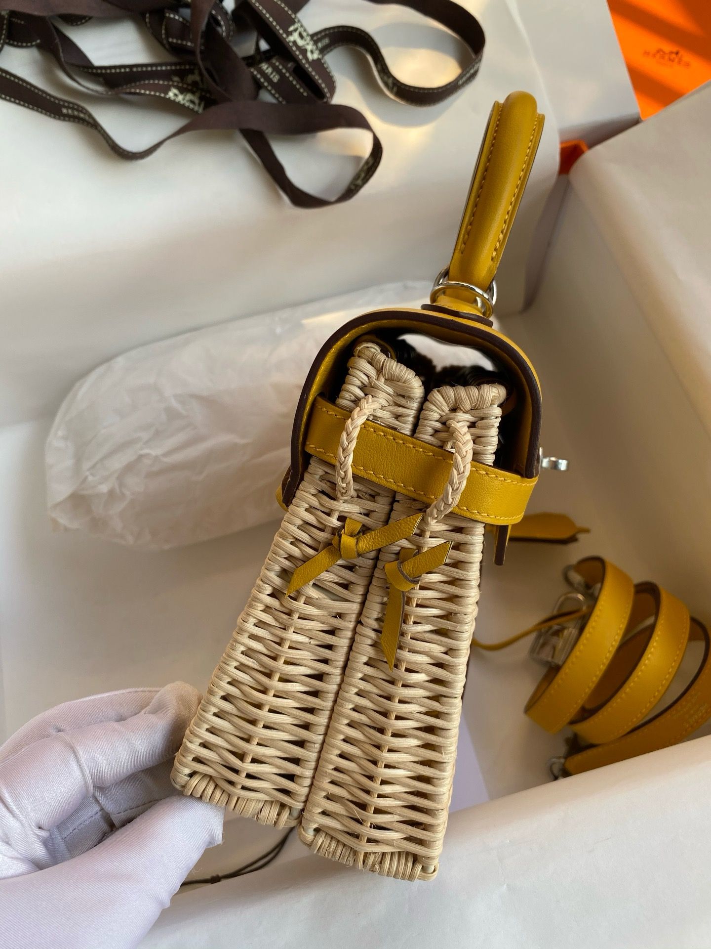 Hermes Picnic Kelly Mini 20 Bag in Wicker and Yellow Calfskin
