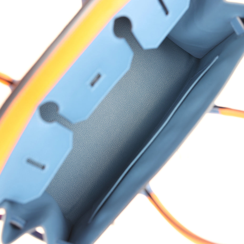 Hermes "Sunset" Birkin Sellier 35 Abricot, Bleu Agate, Magnolia and Rouge Casaque Epsom Palladium Hardware Shop for an authentic Hermes Birkin Sellier 35 in "Sunset" Birkin 35 Sellier Abricot, Bleu Agate, Magnolia and Rouge Casaque Epsom with palladium hardware in new and never worn condition at Madison Avenue Couture.