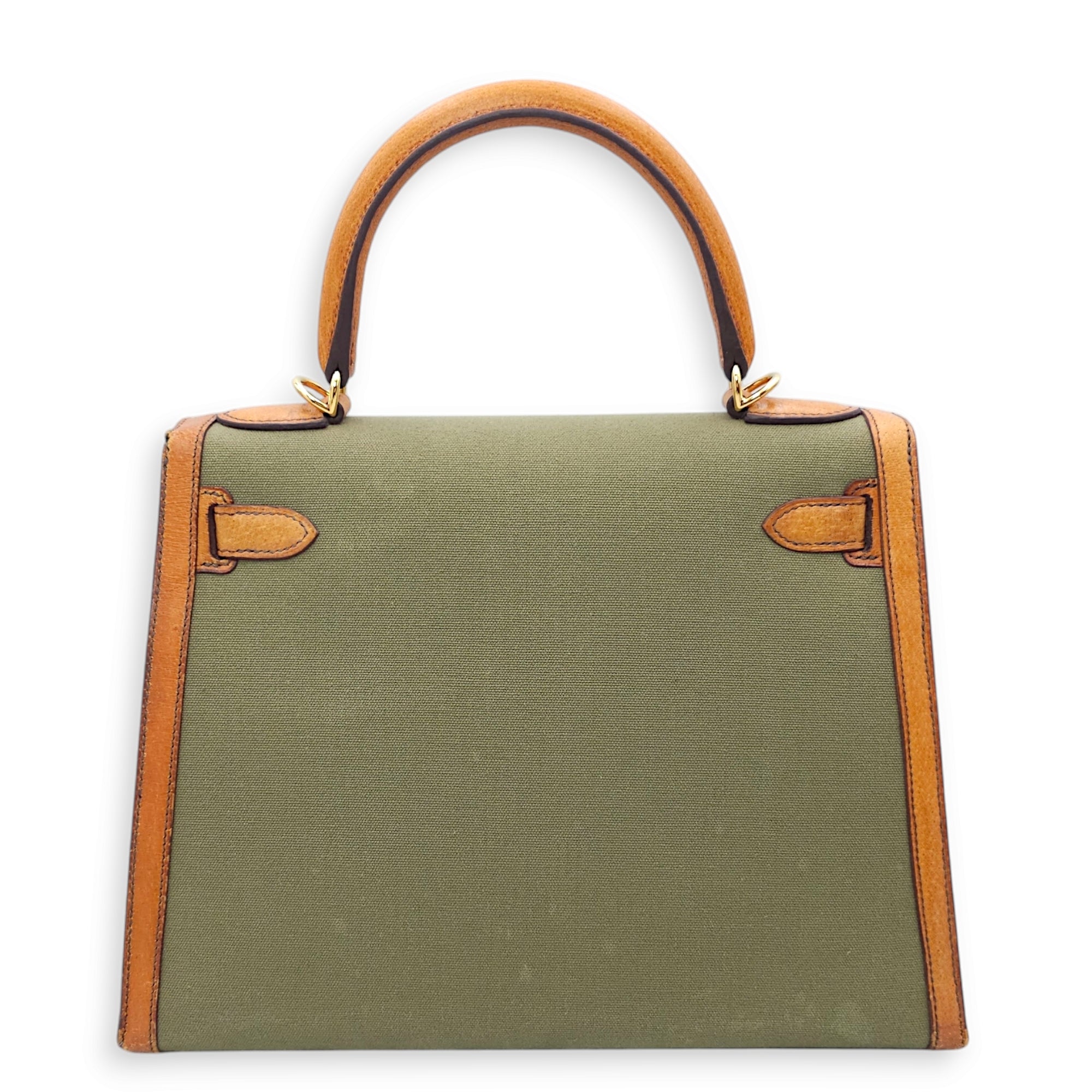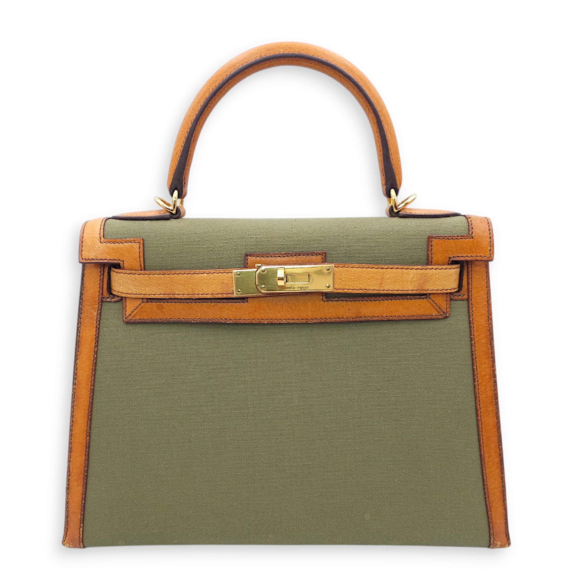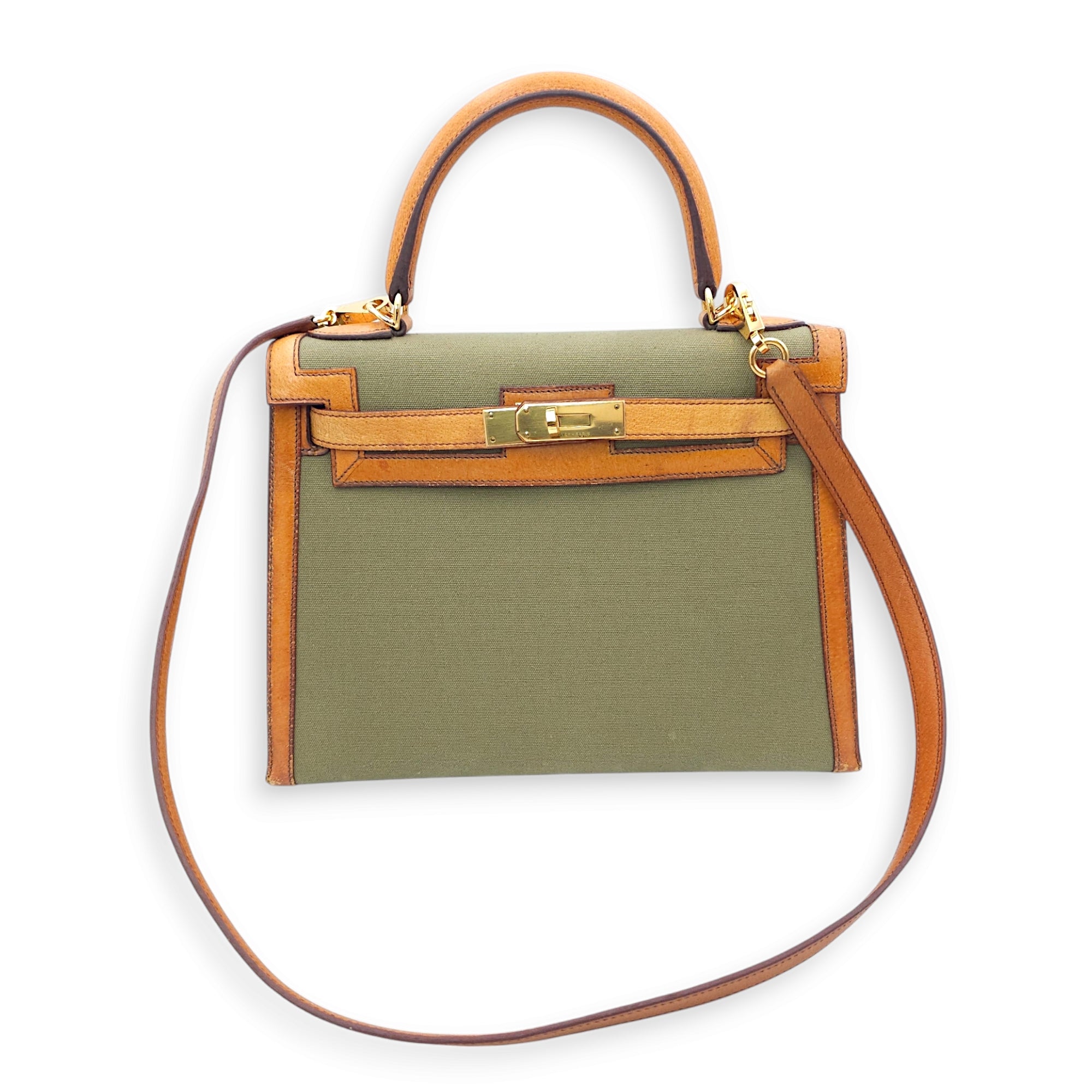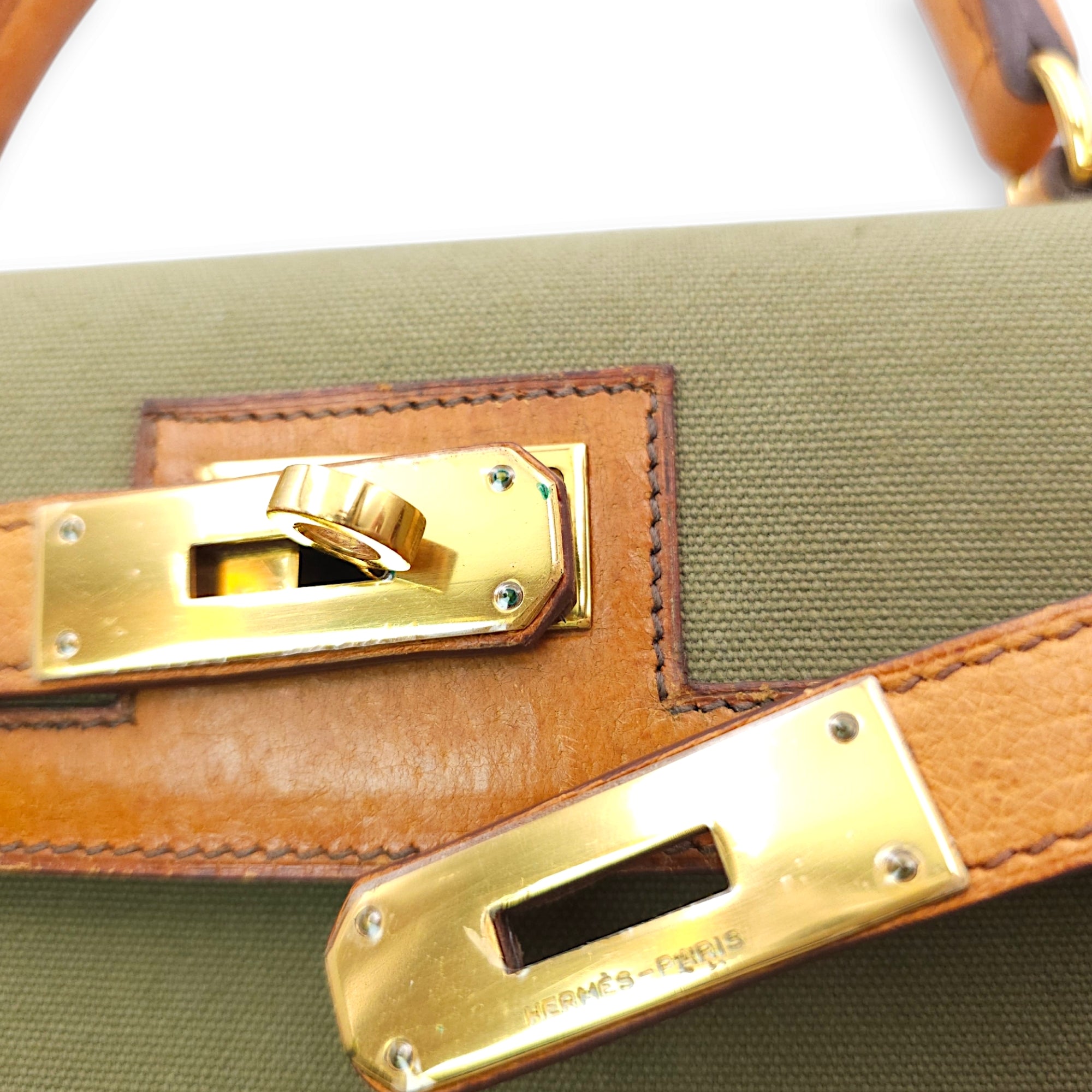 Kelly 28 Naturel/Olive in Porc/Toile, Palladium hardware