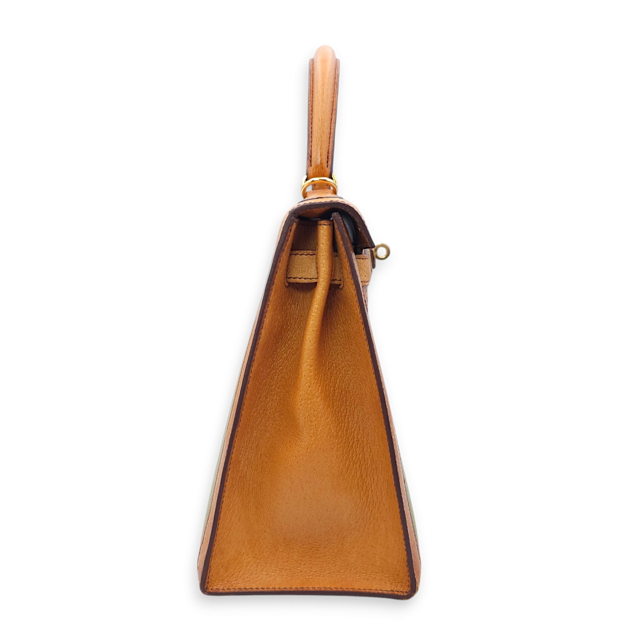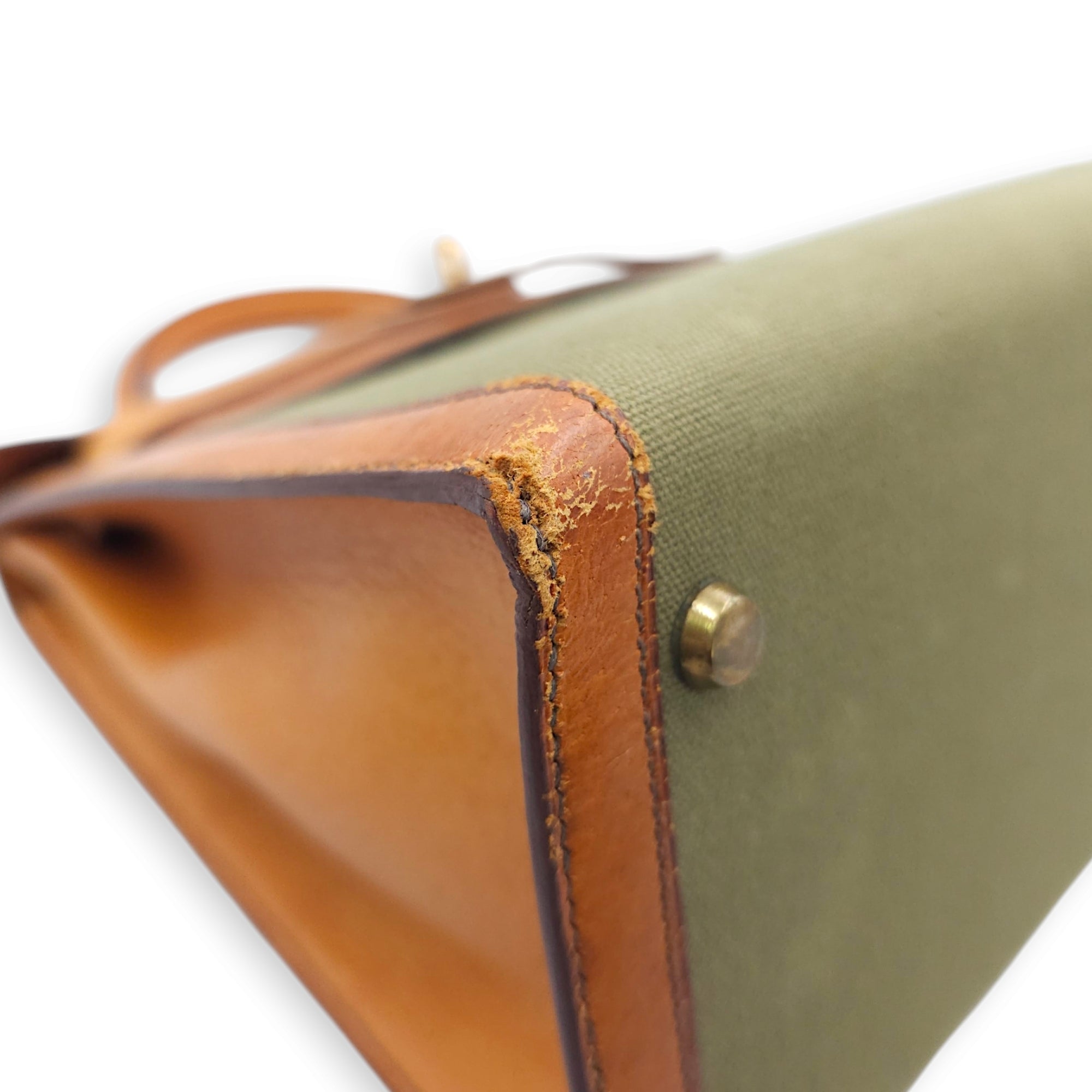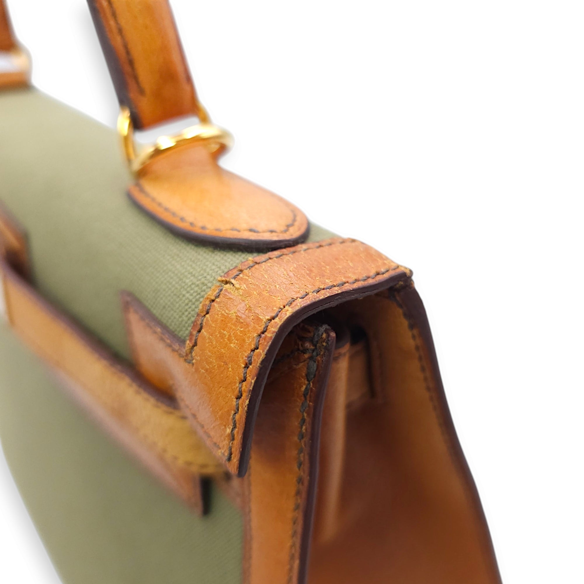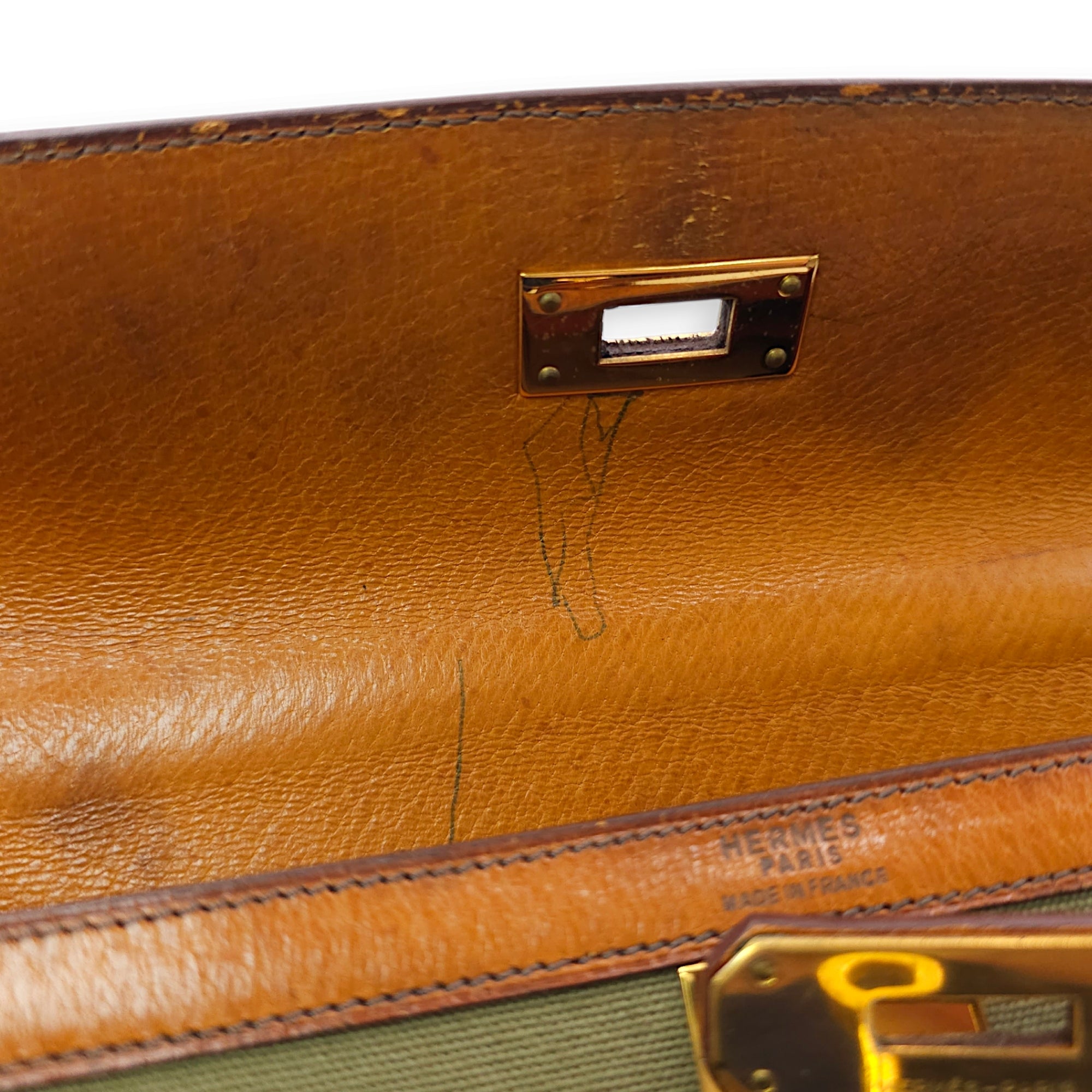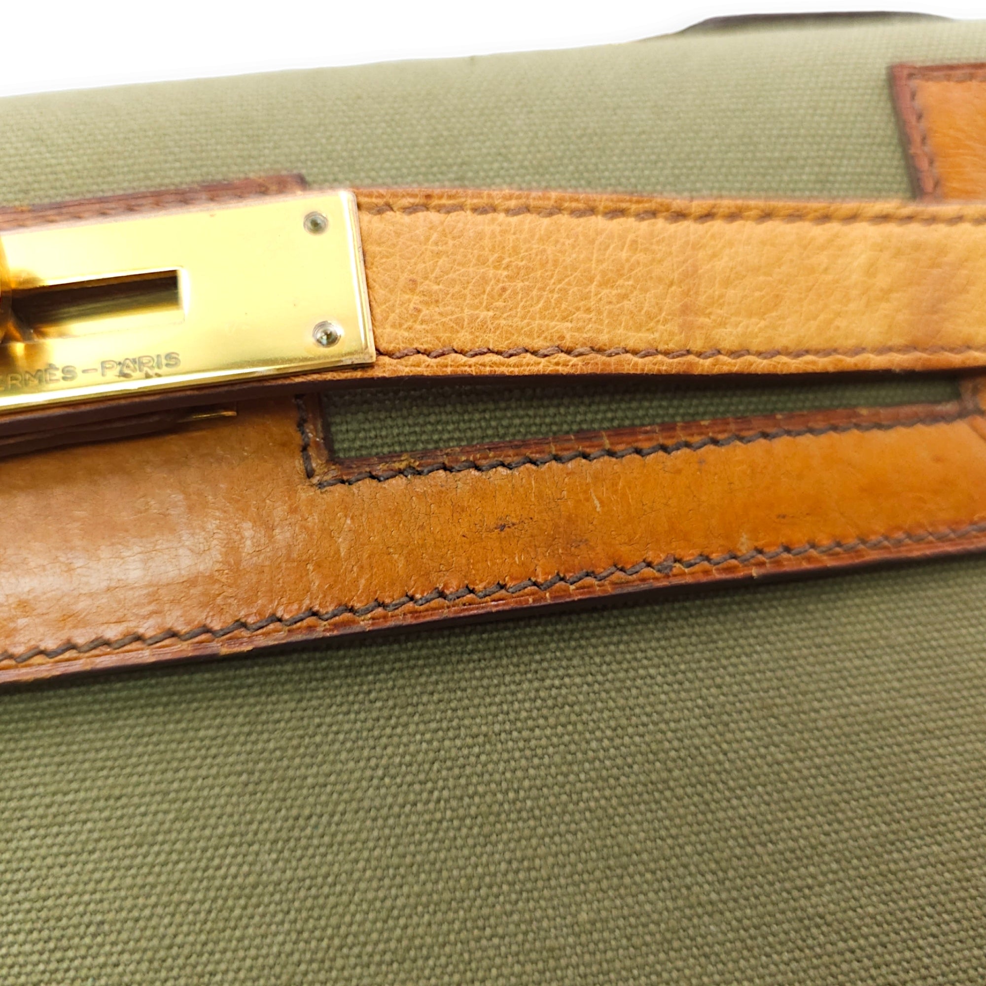 Kelly 28 Naturel/Olive in Porc/Toile, Palladium hardware