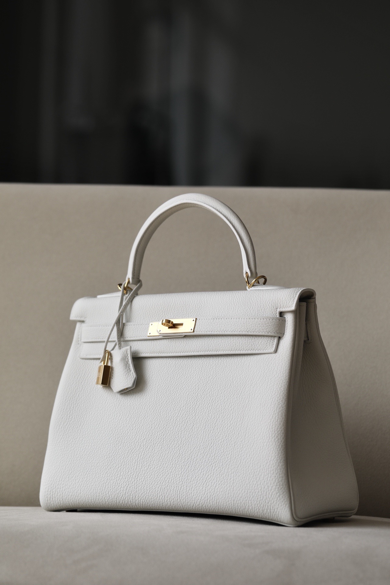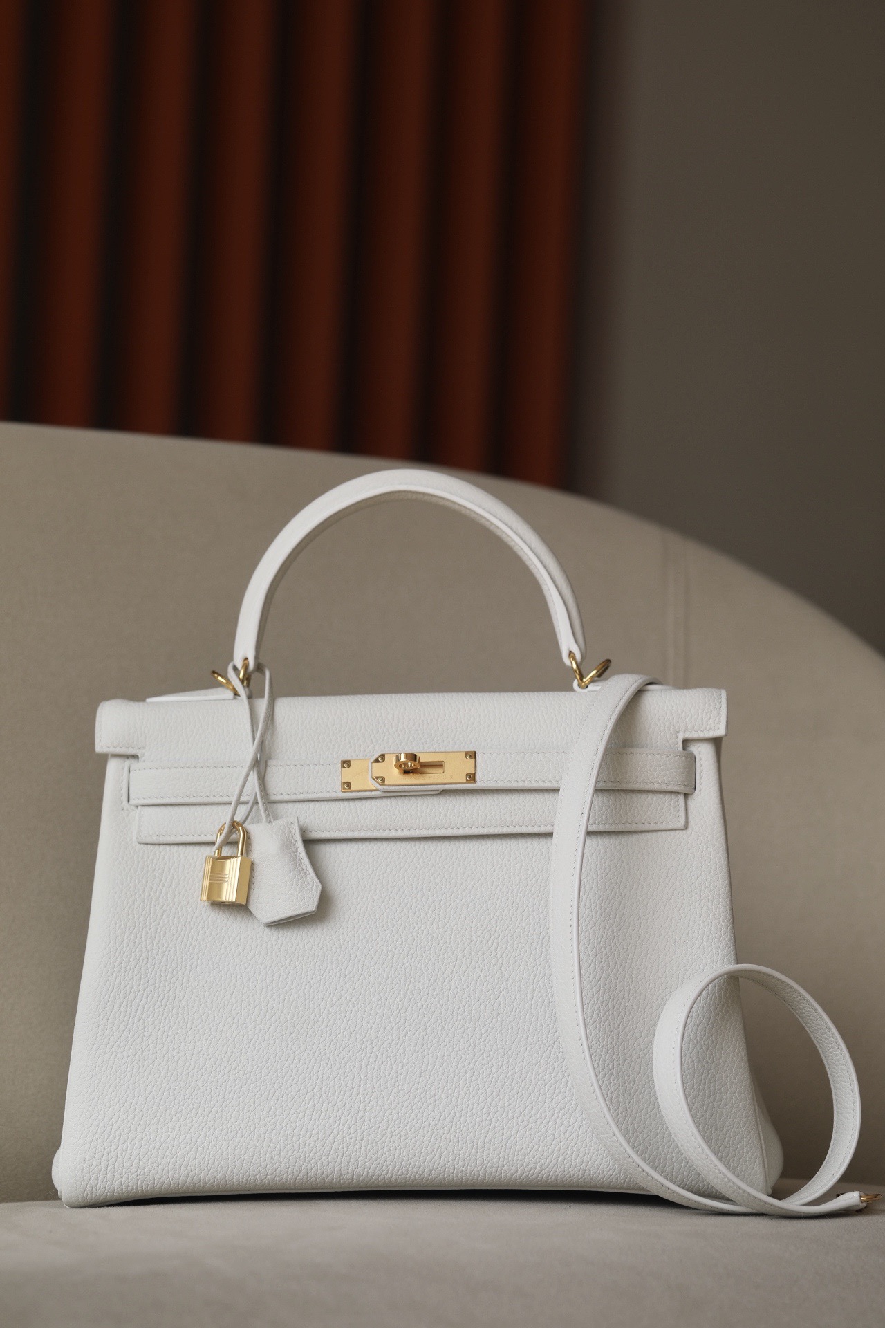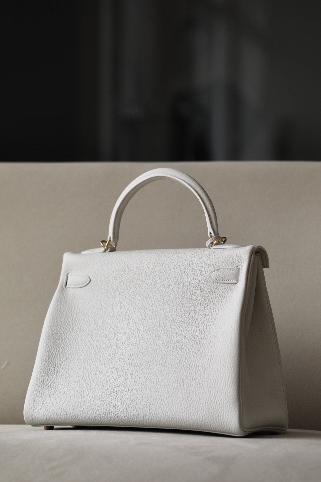 Kelly 32 Togo Blanc (01) Gold Hardware