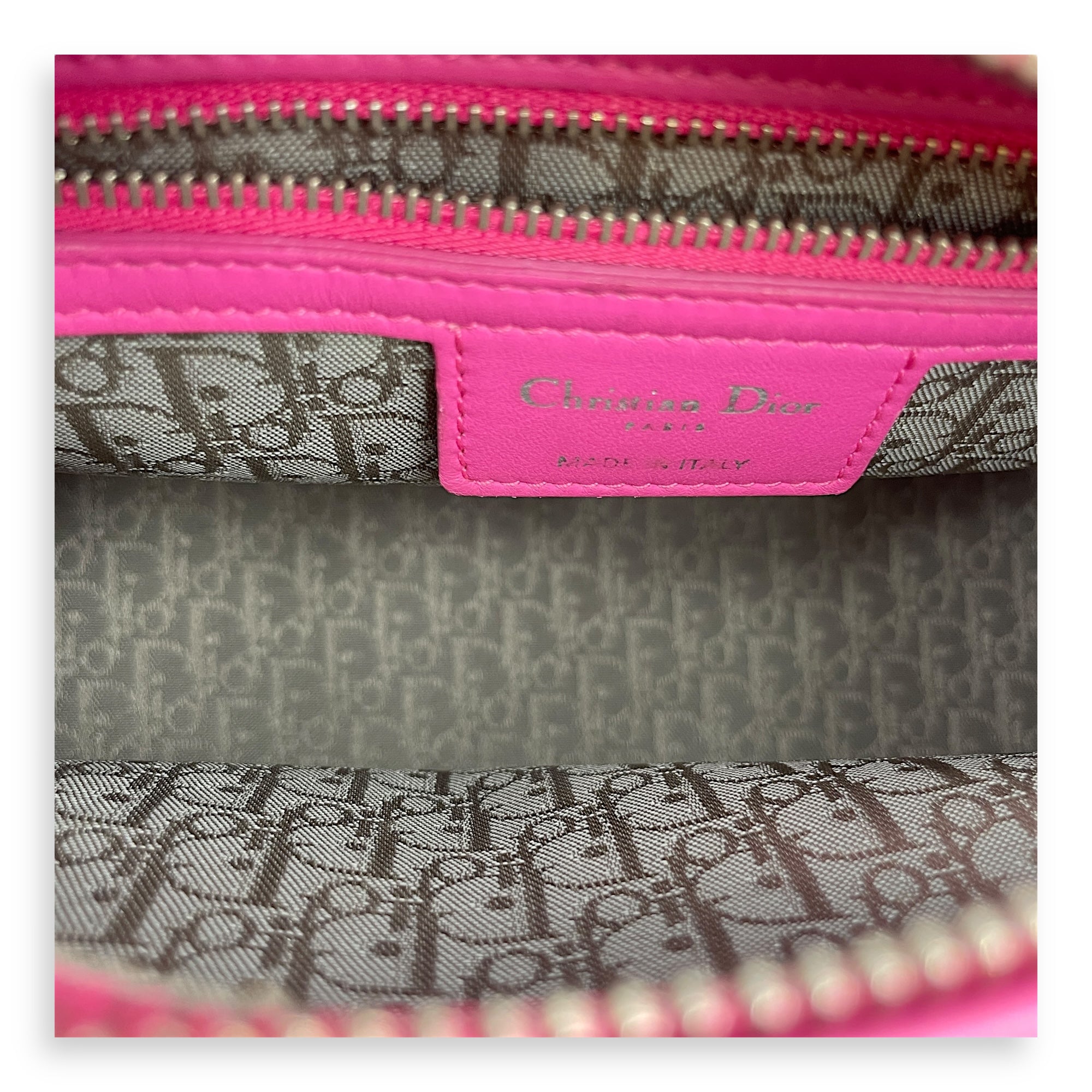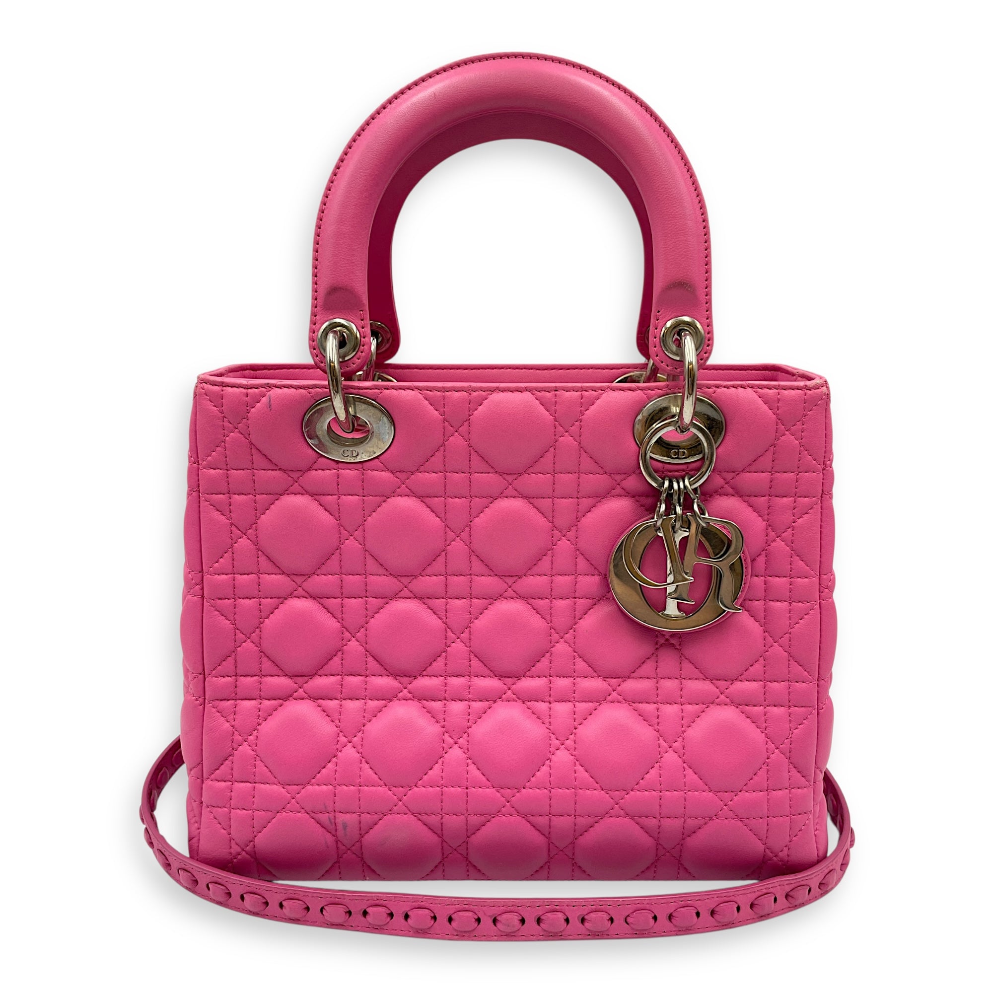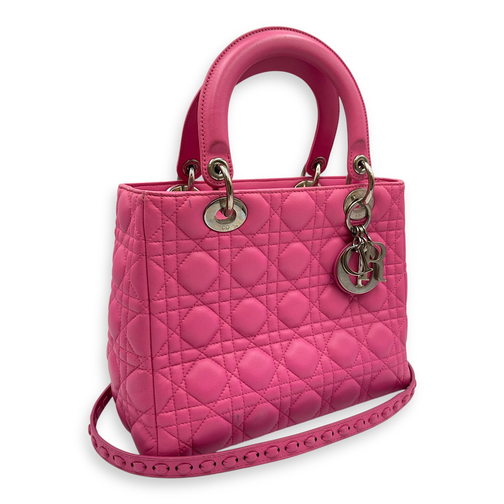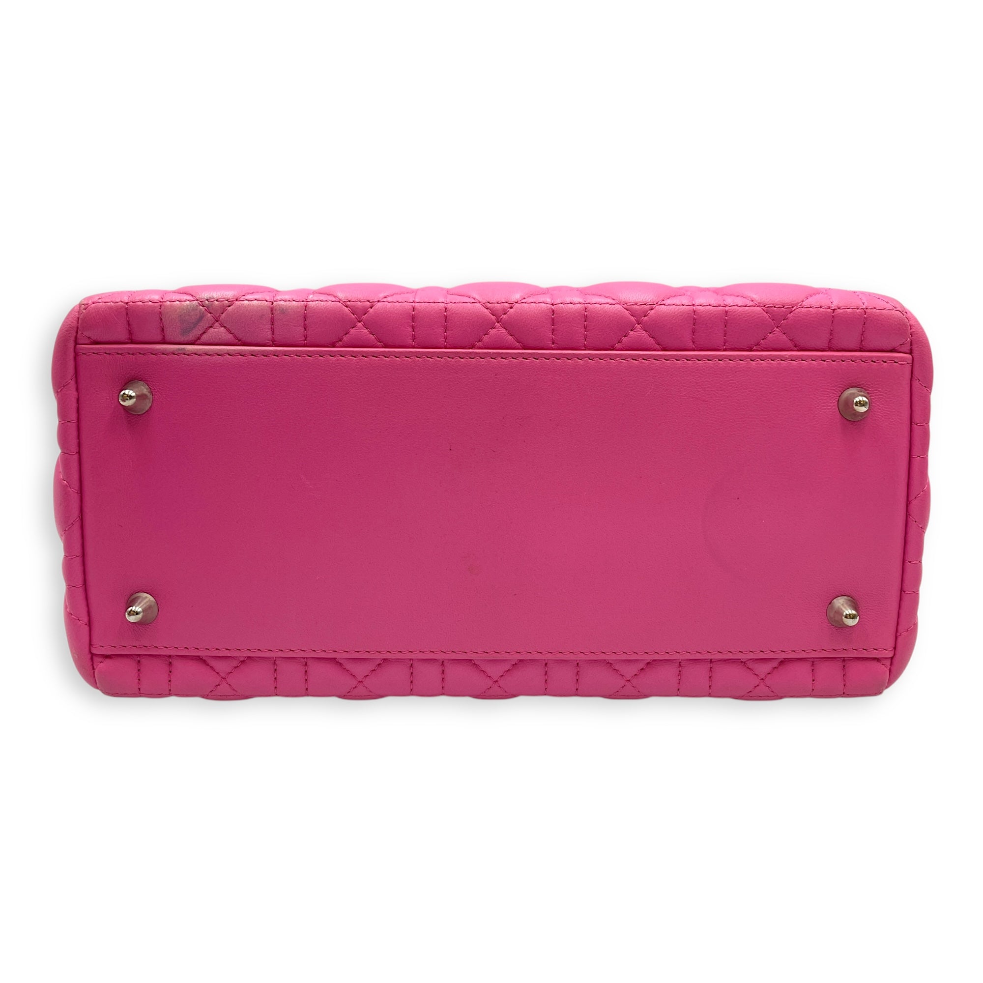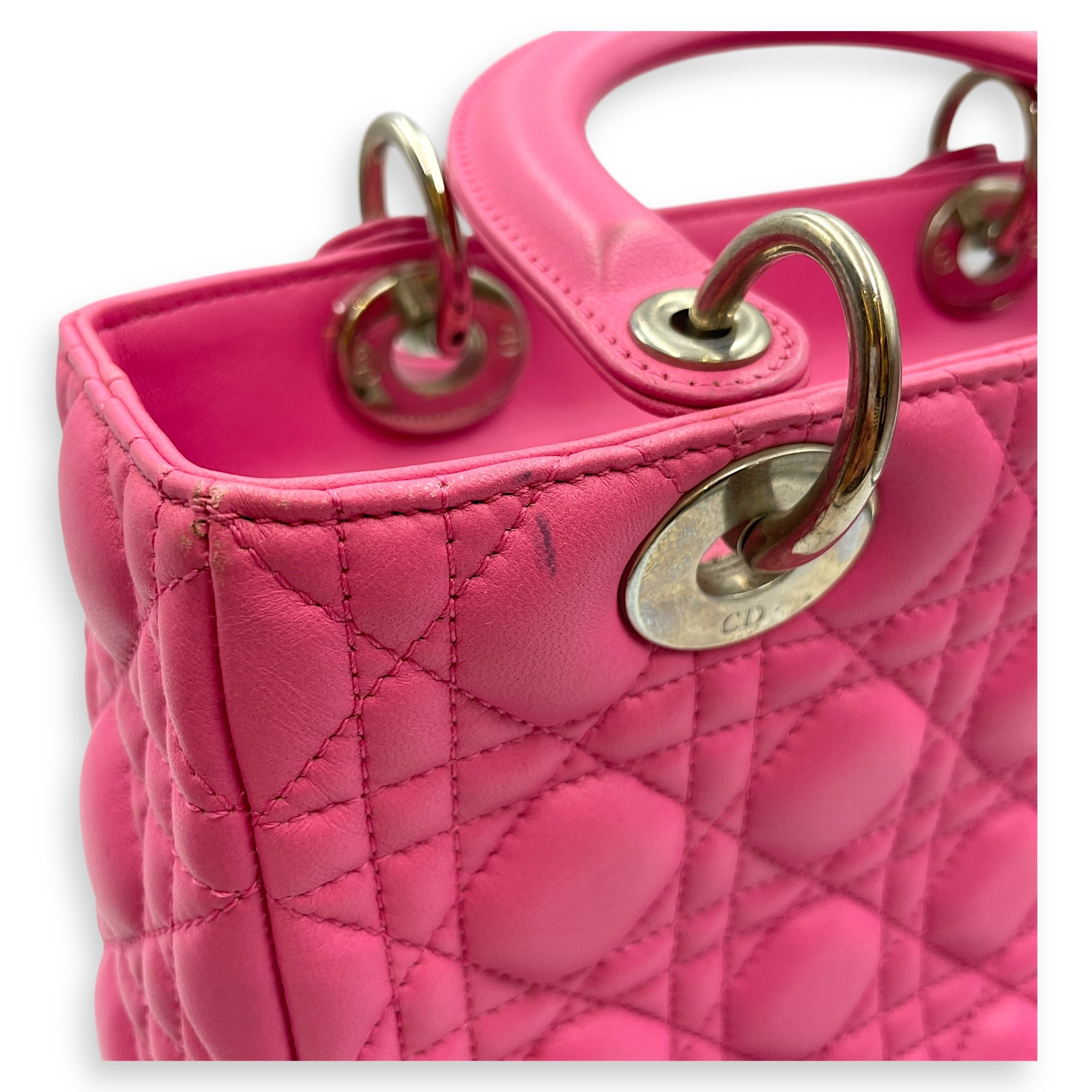 Lady Dior Medium Barbie Pink Top Handle Bag in Lambskin, Silver hardware