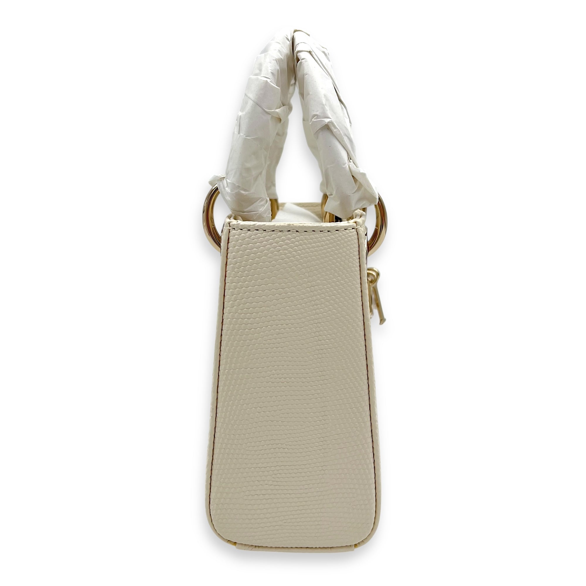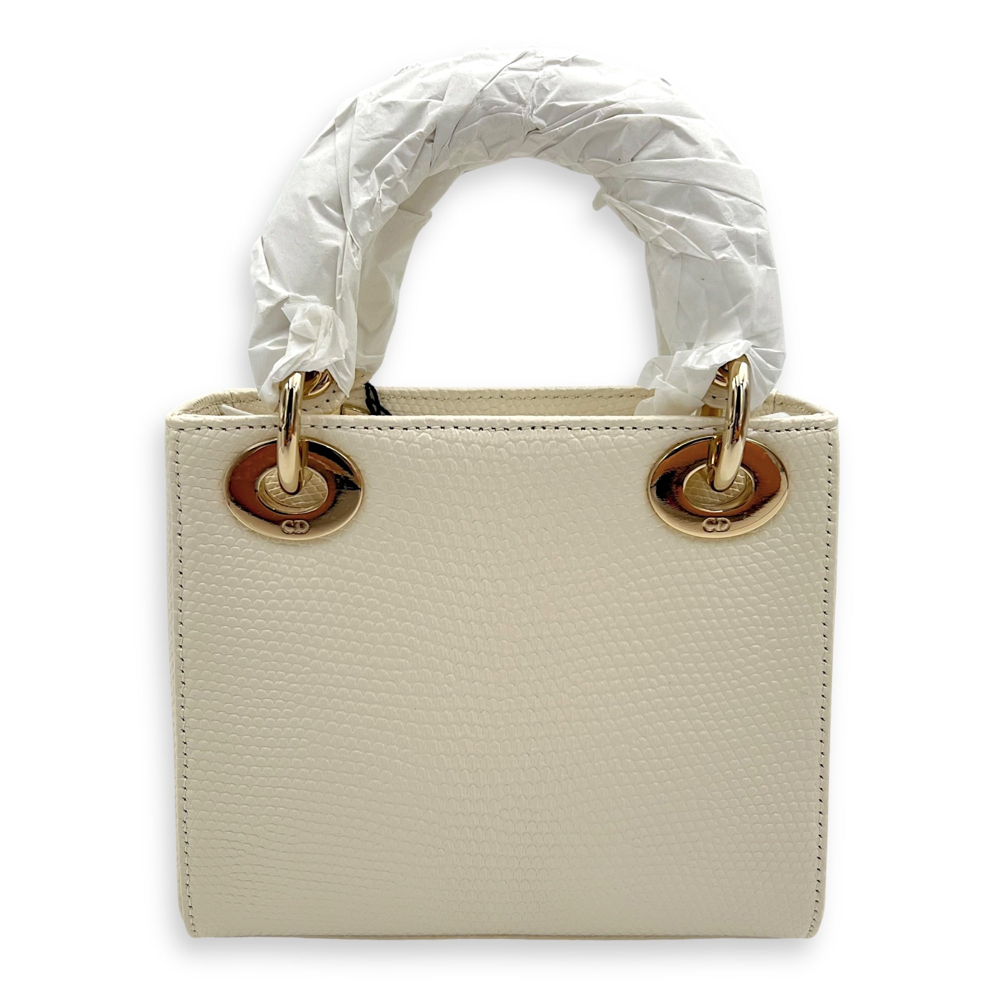 Lady Dior Top Handle Bag Mini White in Lizard, Gold hardware