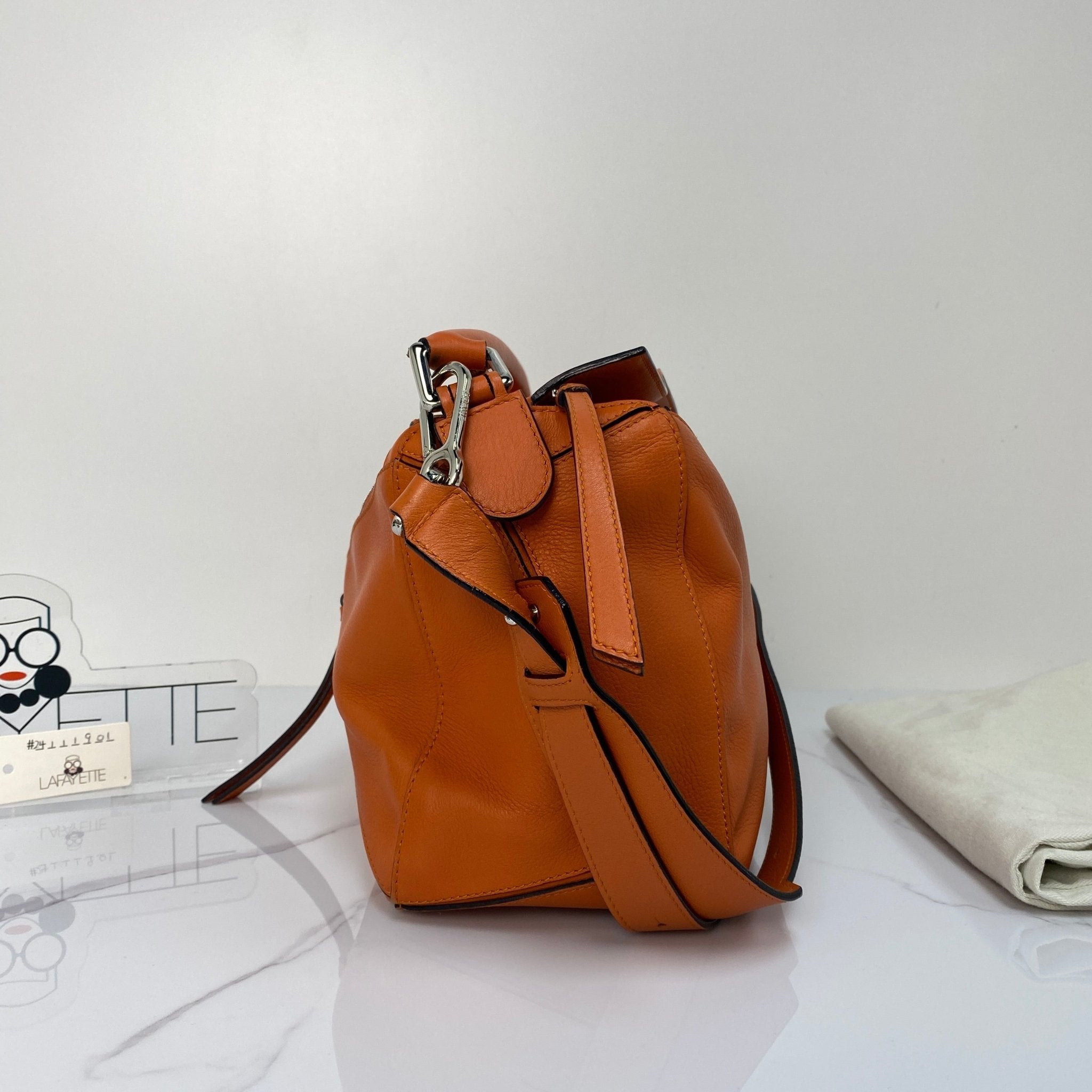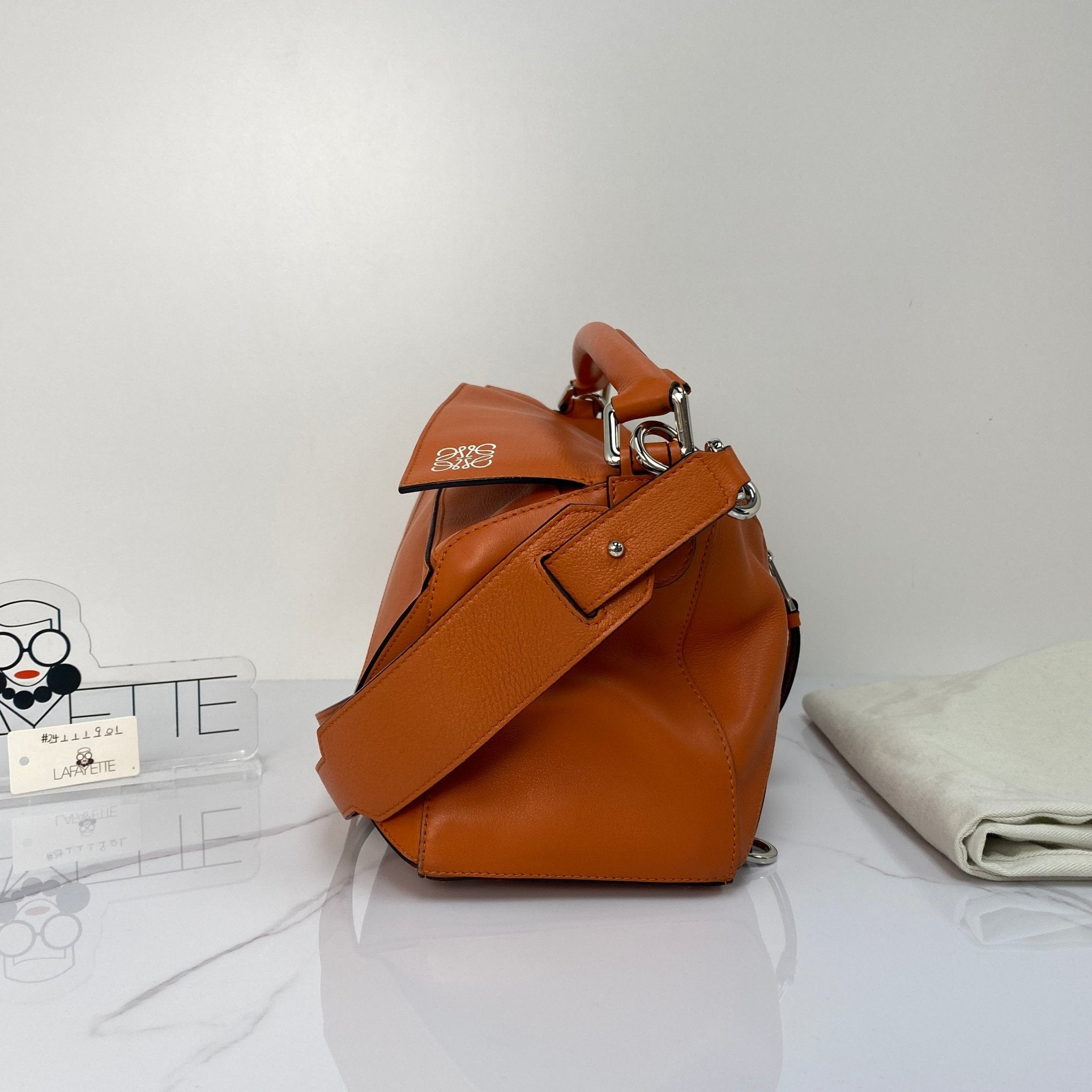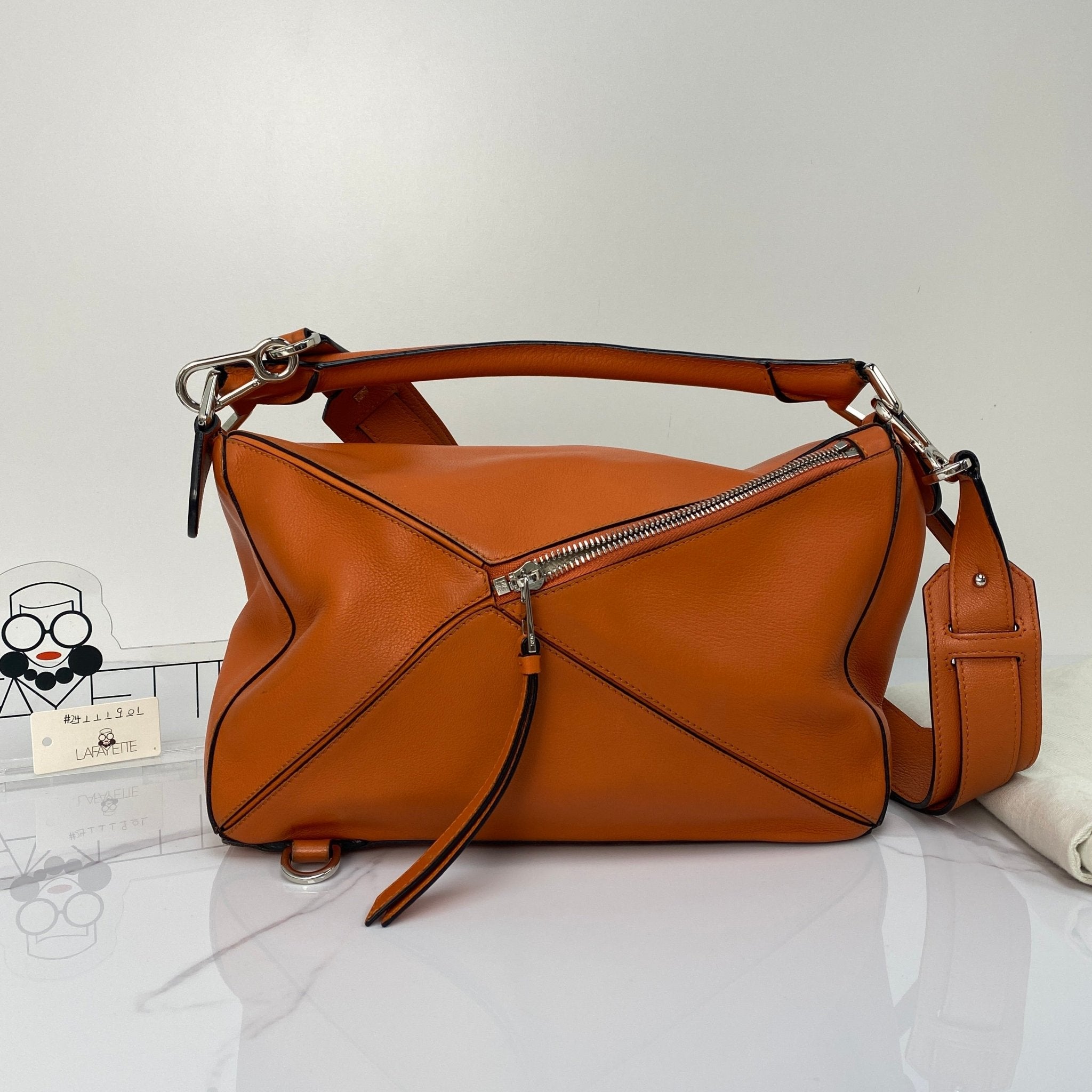 Crafted in smooth calfskin, the Loewe Medium Puzzle Bag in orange is both artful and functional. Its geometric lines and striking color make it a modern icon, perfect for adding energy and style to any day.
