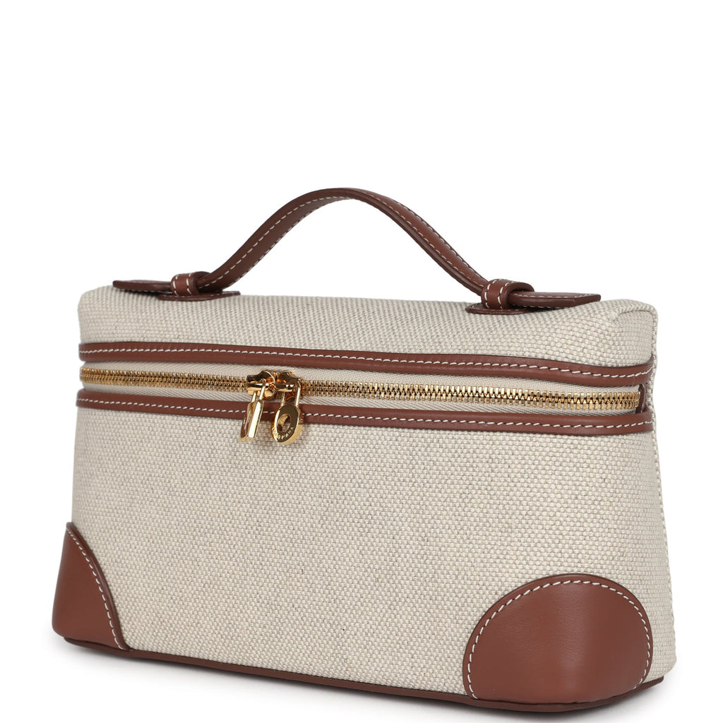 Loro Piana Extra Pocket L19 Pouch Natural and Sun Gold Linen Gold Hardware