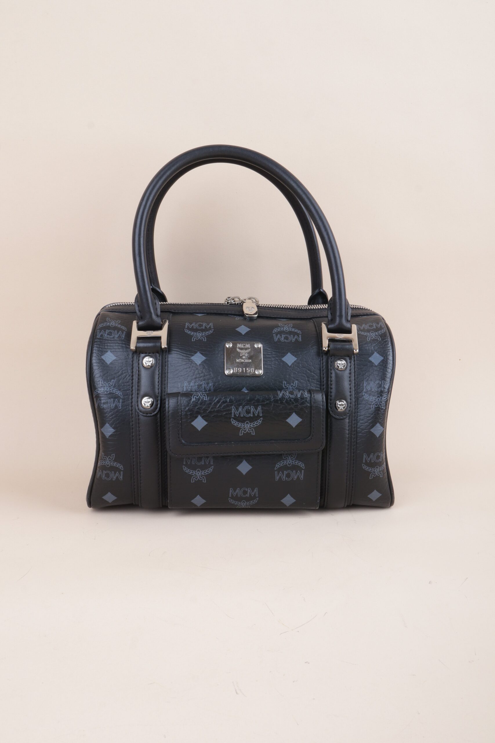 MCM Black Small Front Pocket Boston Tote Bag