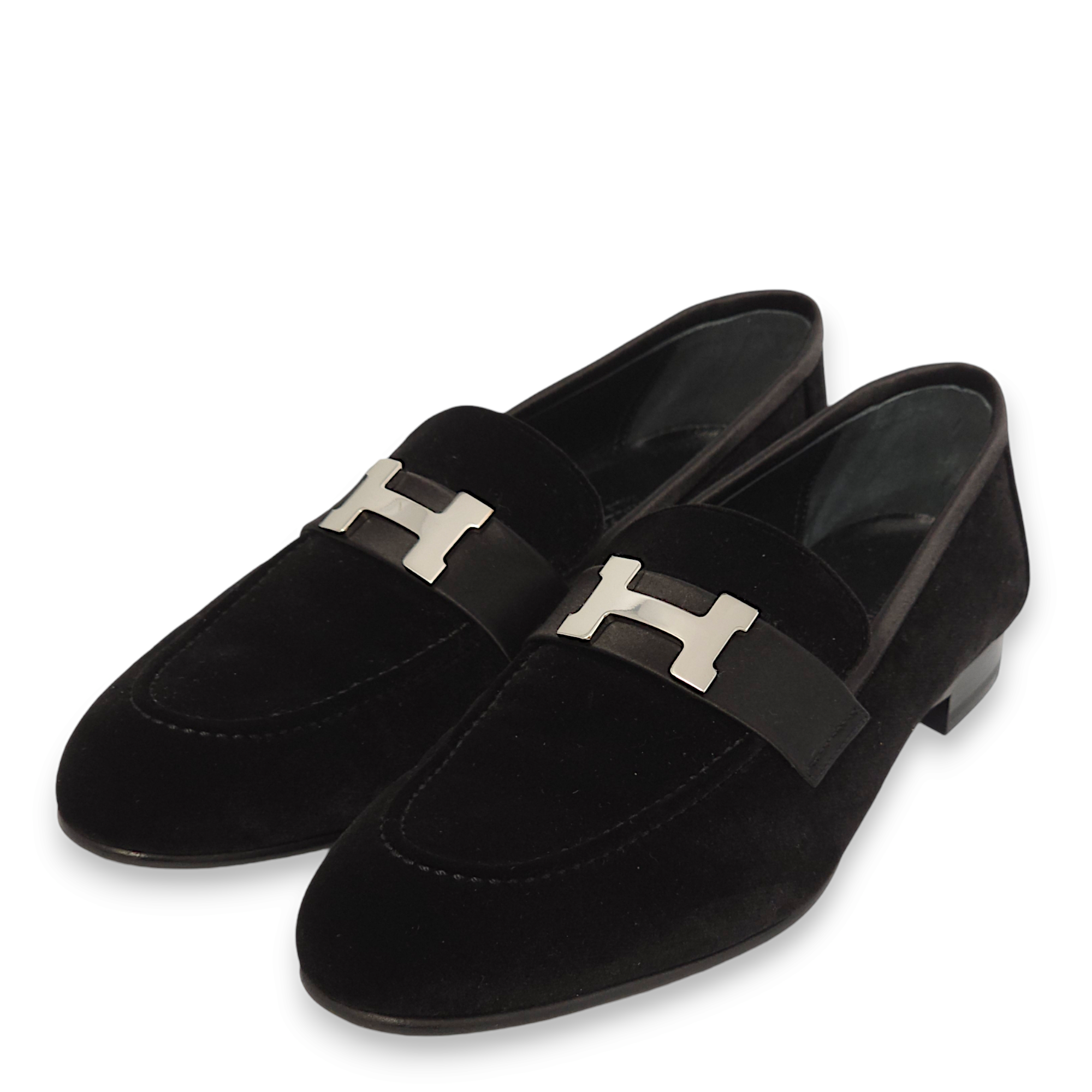 Paris 38.5 Black Loafers in Suede Leather, Palladium hardware