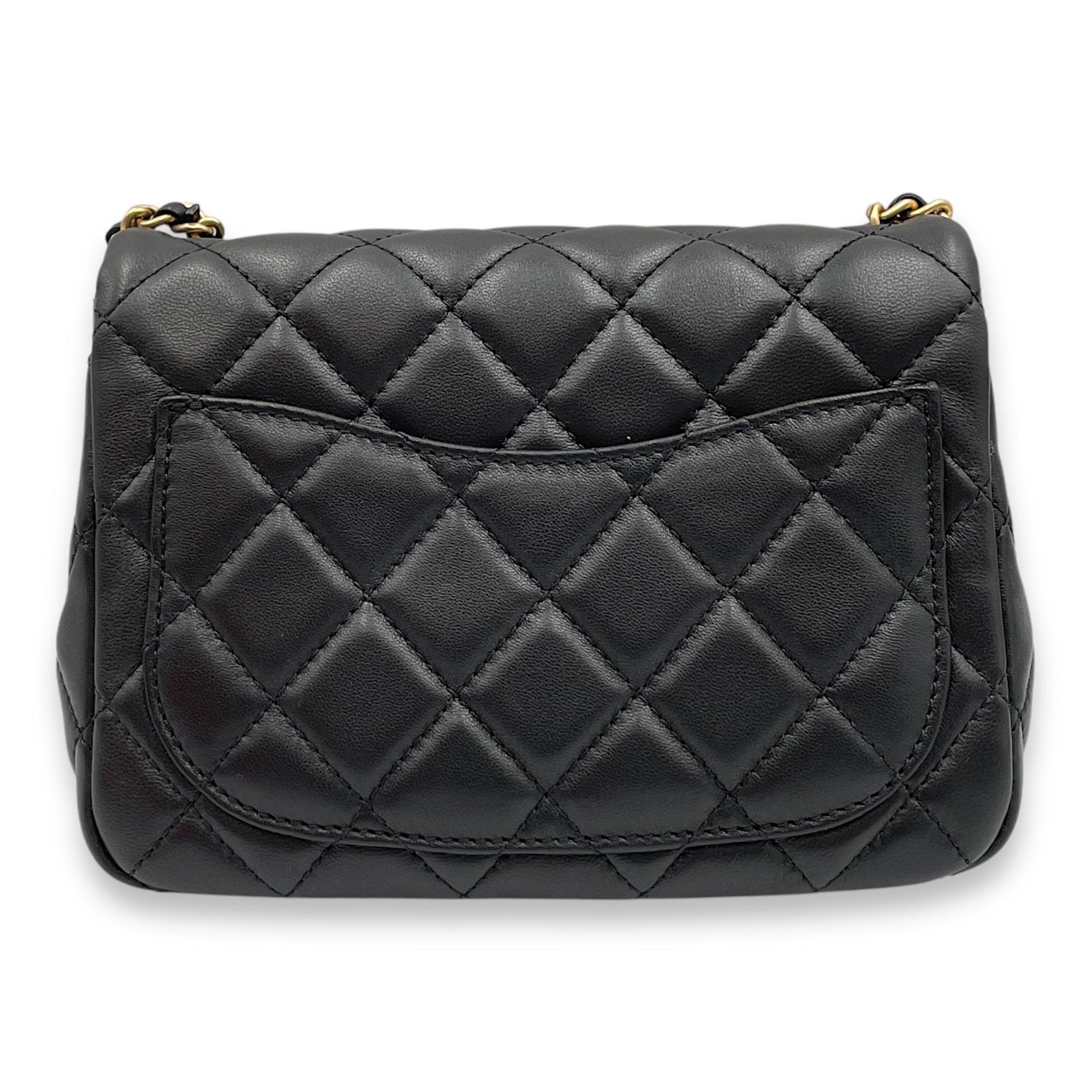 Pearl Crush Square Mini Black Crossbody Bag in Lambskin, Gold hardware
