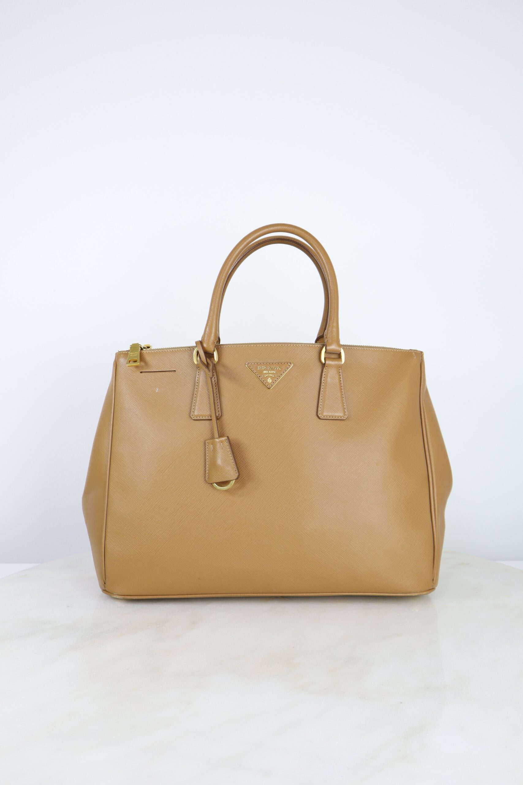 Prada Camel Double Zip Shopping Top Handle Bag
