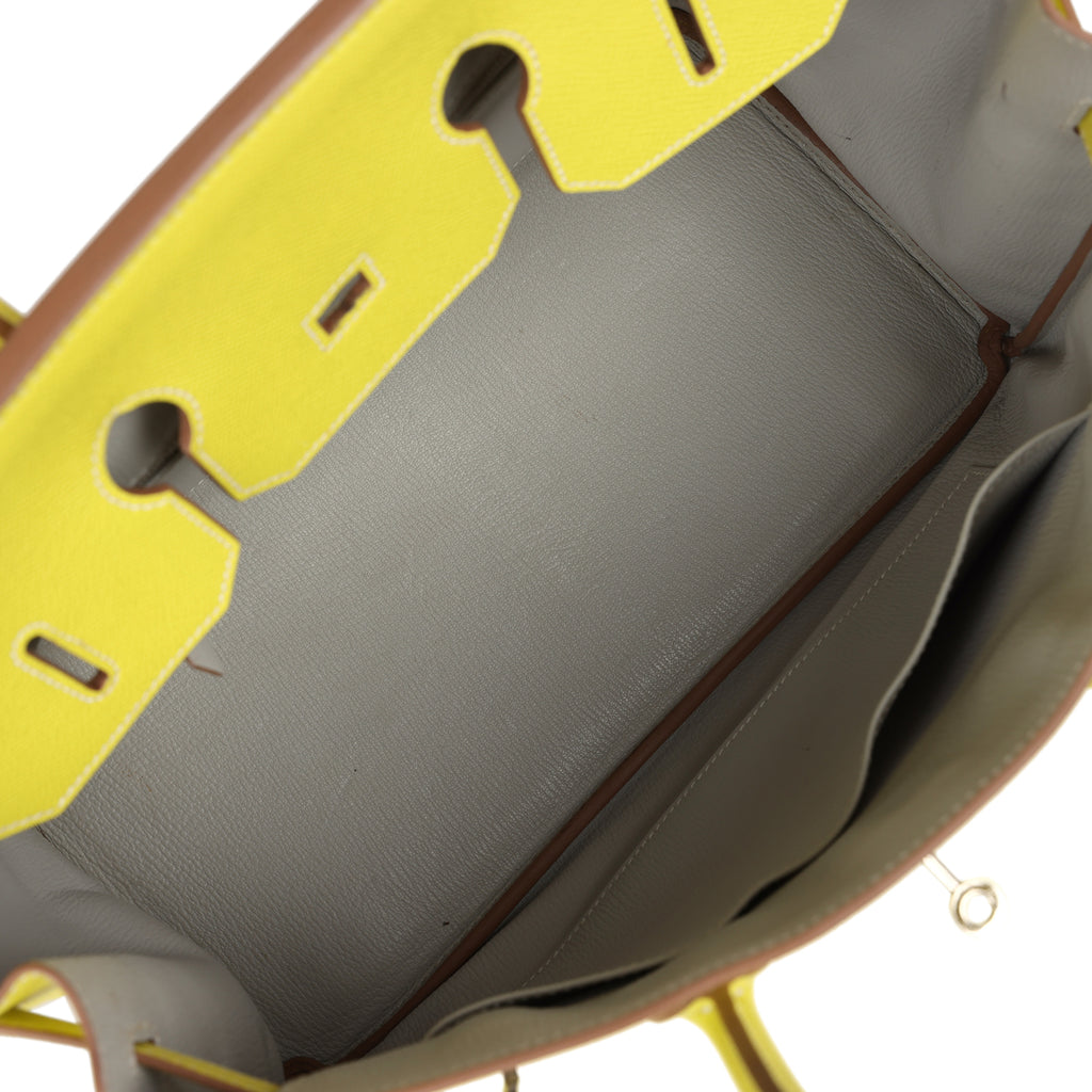 Pre-owned Hermes Birkin 35 Lime Candy Epsom Palladium Hardware Shop for an authentic pre-owned Hermes Birkin Candy 35 in Lime and Gris Perle epsom leather with palladium hardware in excellent condition at Madison Avenue Couture.