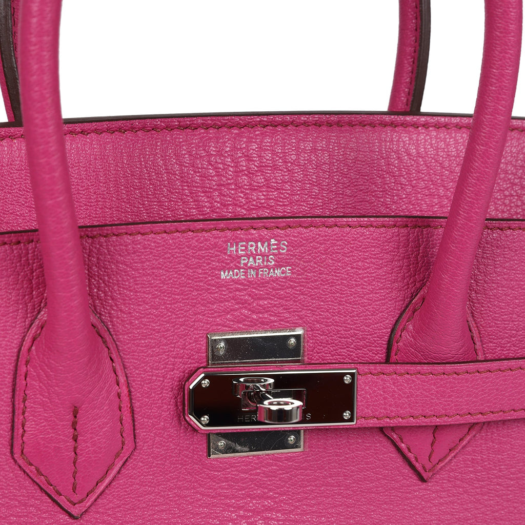 Pre-owned Hermes Birkin 35 Rose Shocking Chevre Mysore Palladium Hardware Shop for an authentic pre-owned Hermes Birkin 35 in Rose Shocking chevre mysore leather with palladium hardware in excellent condition at Madison Avenue Couture.