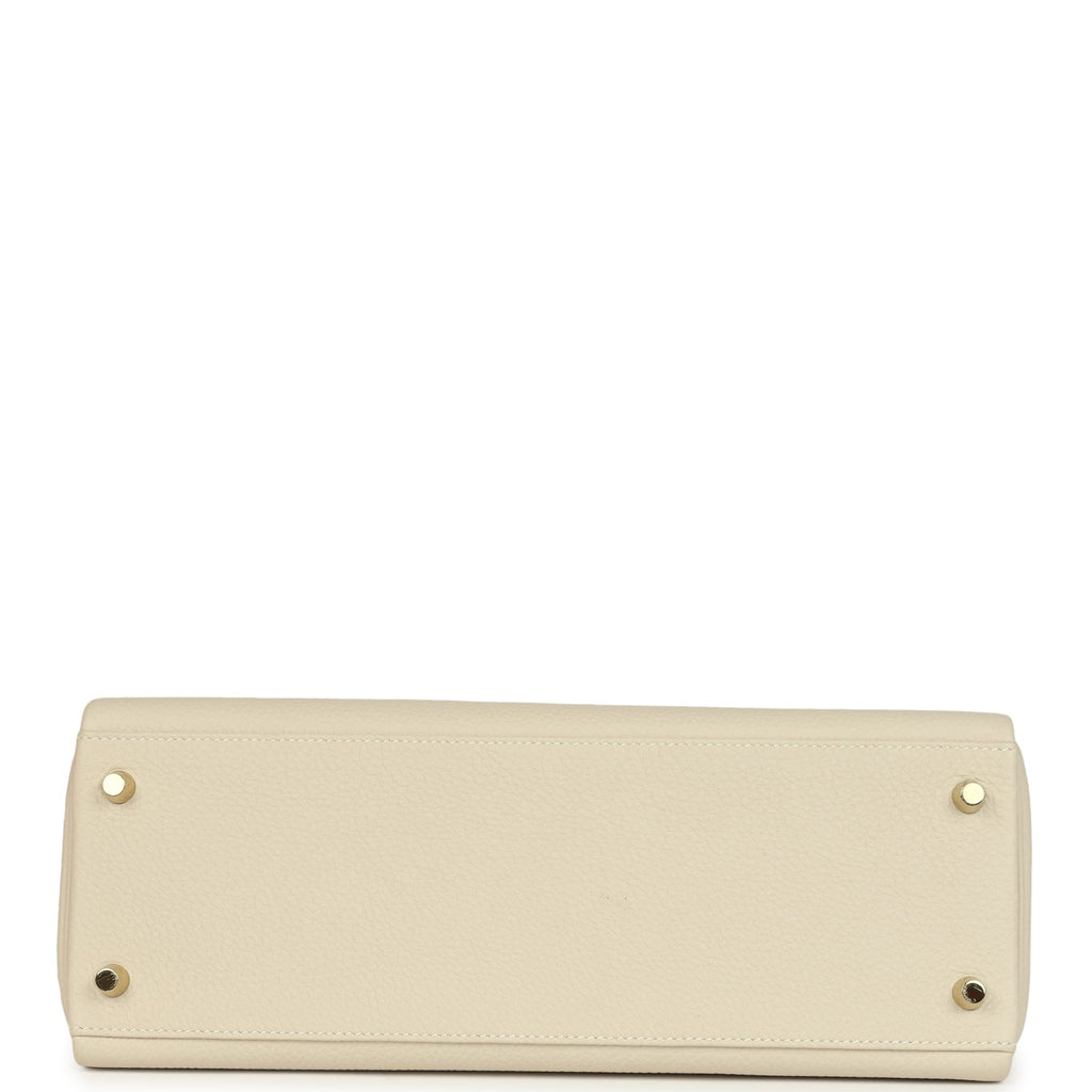 Pre-owned Hermes Kelly Retourne 32 Craie Togo Gold Hardware Shop for an authentic Hermes Kelly Retourne 32 in Craie togo with gold hardware in excellent to mint condition at Madison Avenue Couture.
