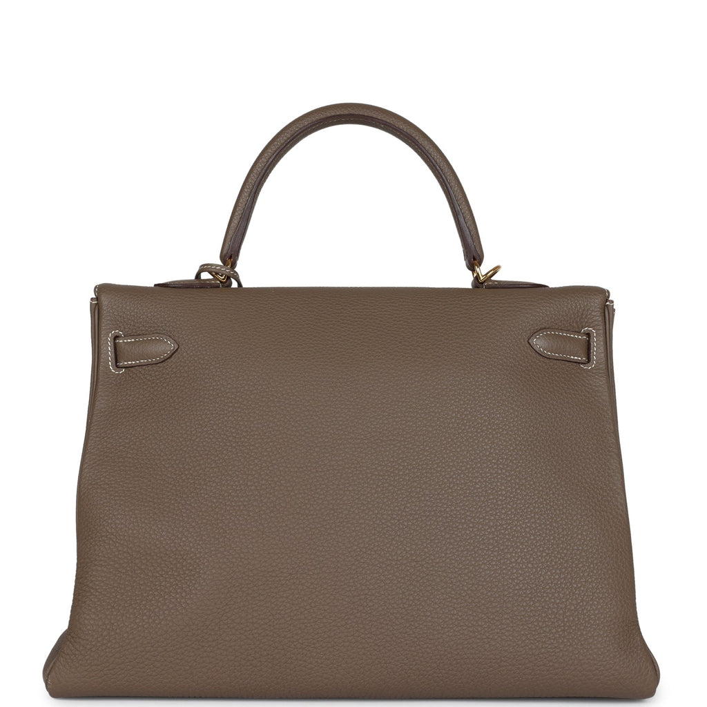 Pre-owned Hermes Kelly Retourne 35 Etoupe Togo Gold Hardware Shop for an authentic pre-owned Hermes Kelly Retourne 35 in Etoupe togo leather with gold hardware in excellent condition at Madison Avenue Couture.
