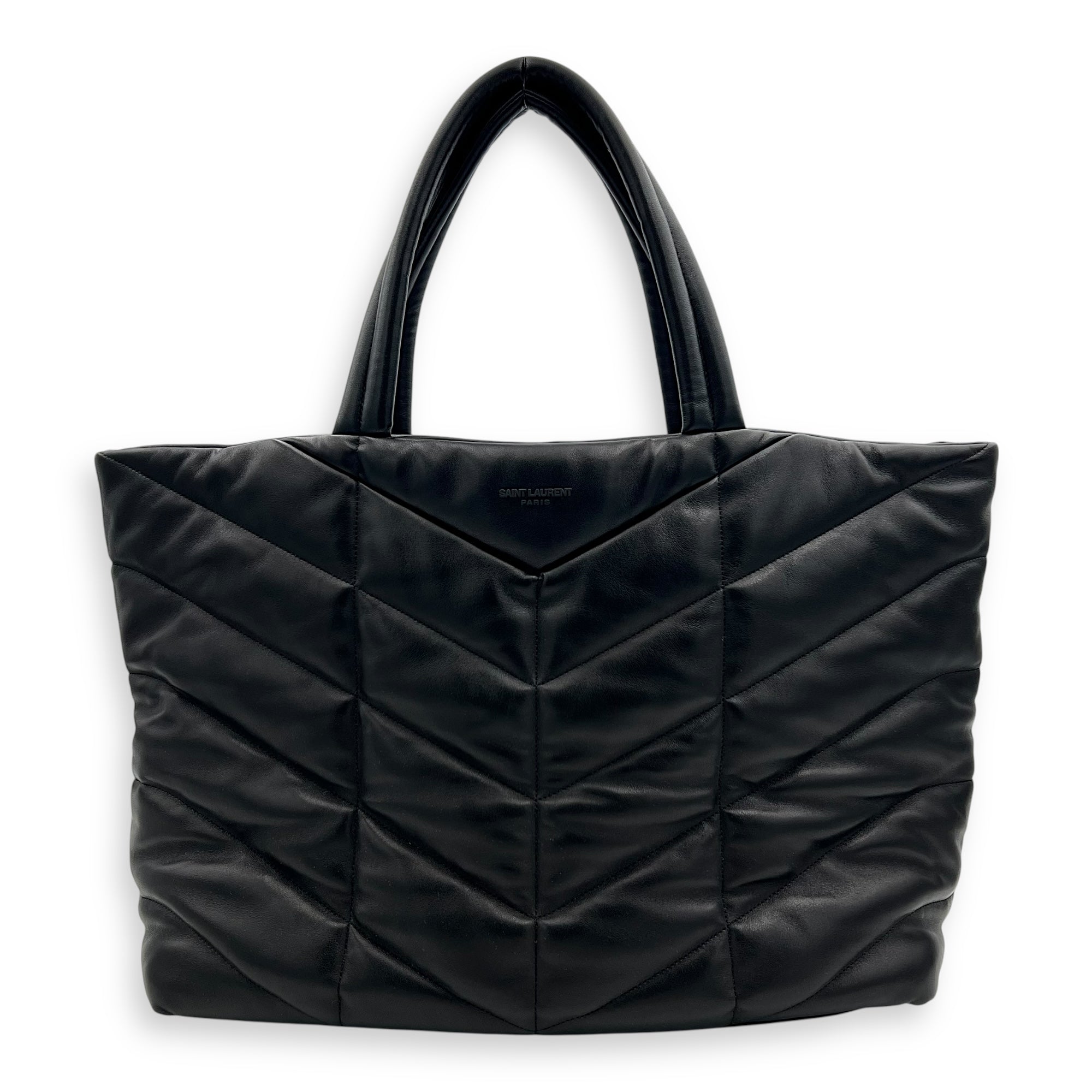 Puffer Tote Bag Black in Lambskin, Black hardware
