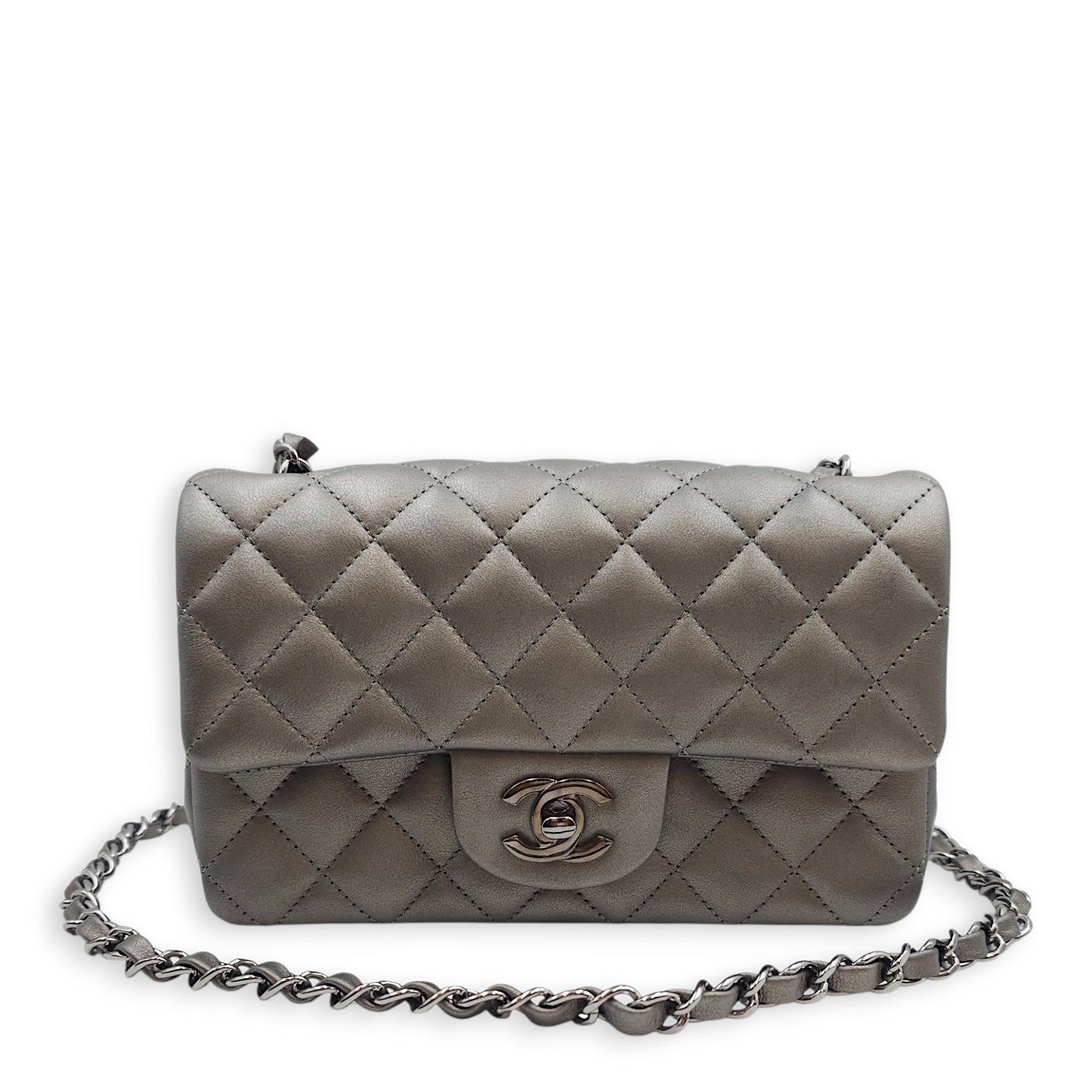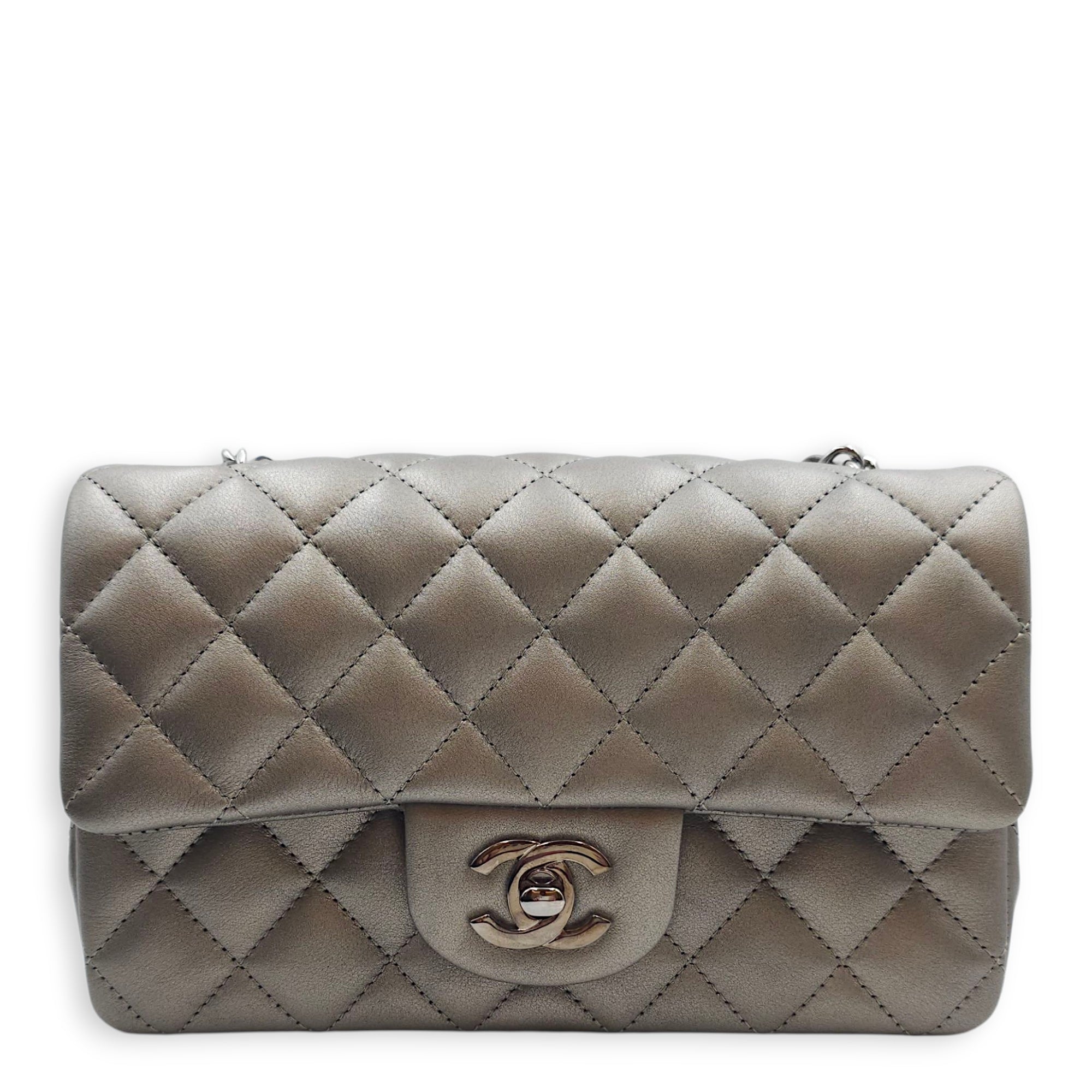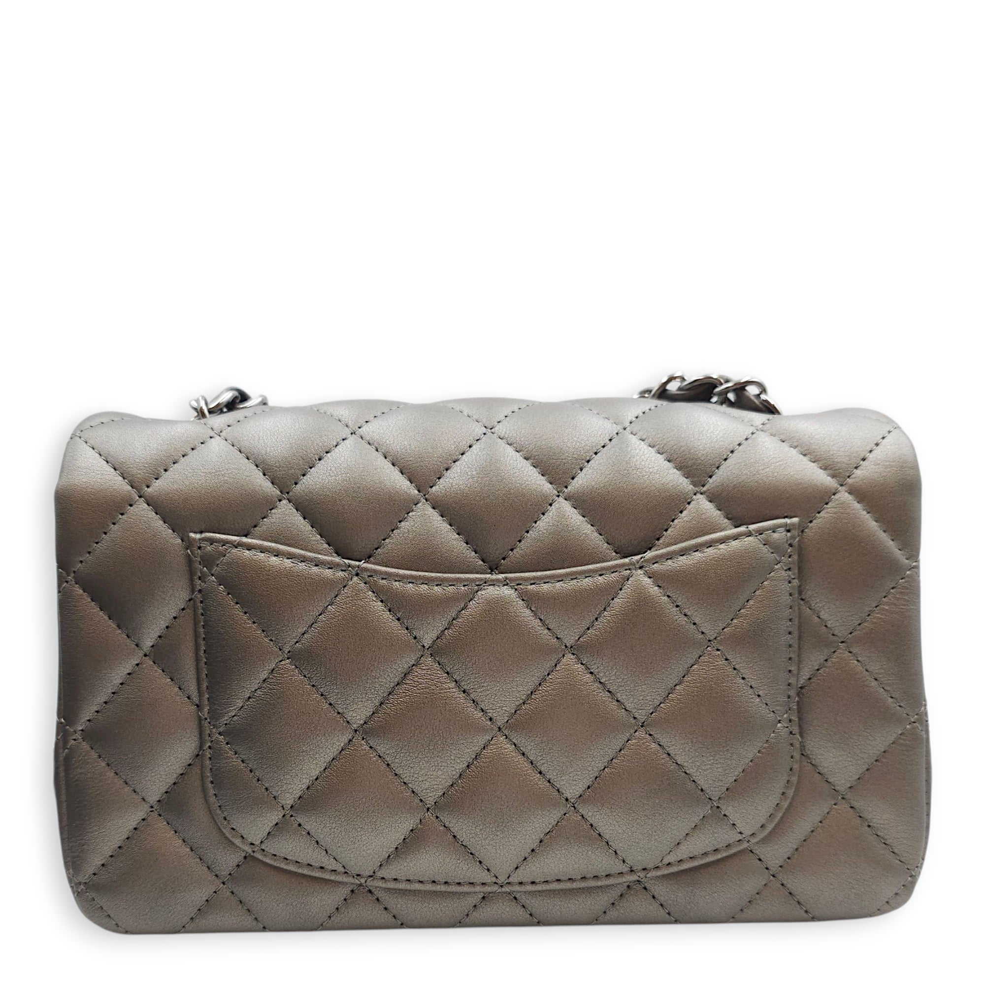 Be the first to review “Quilted Rectangular Mini Grey Flap Bag in Lambskin, Silver hardware”