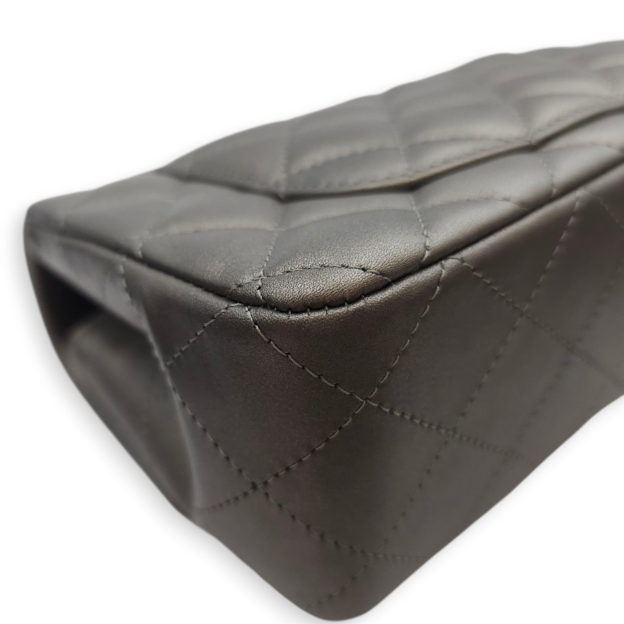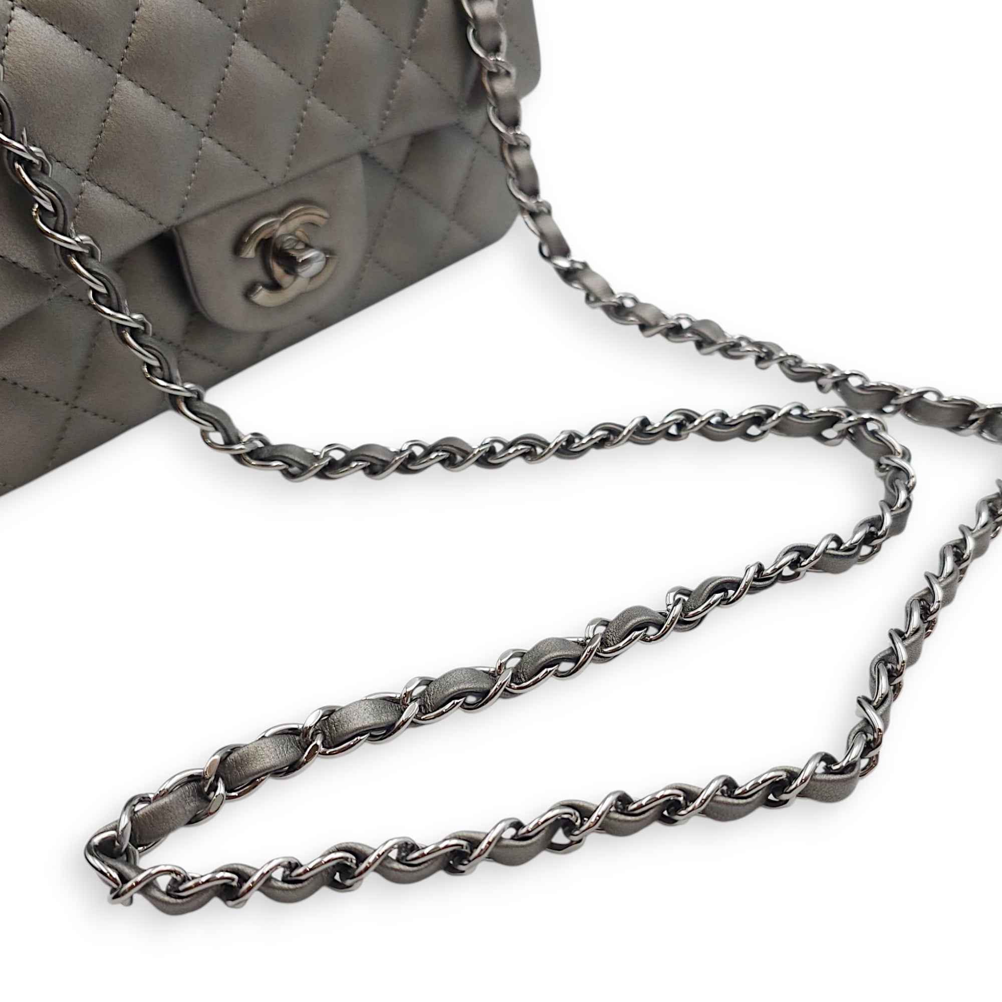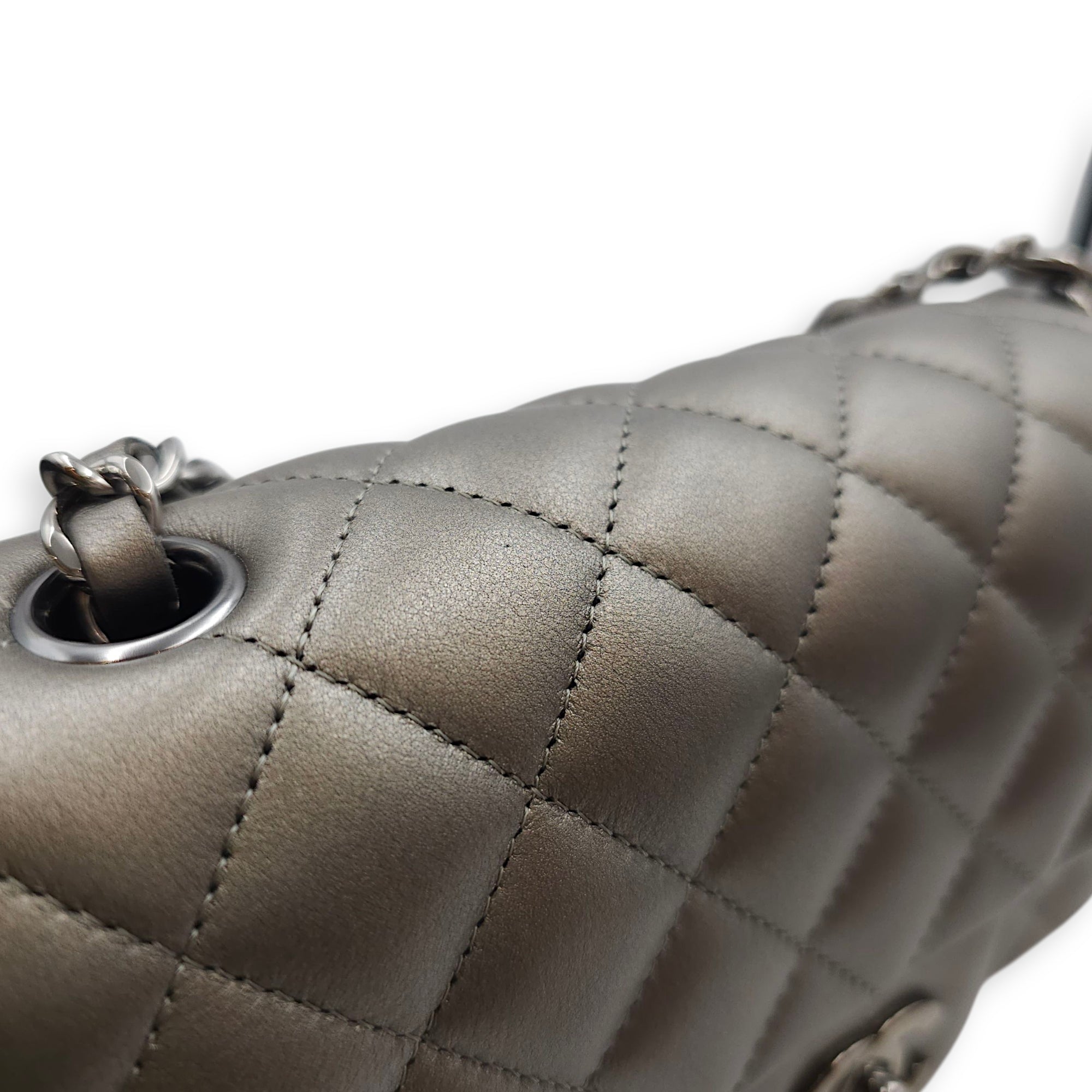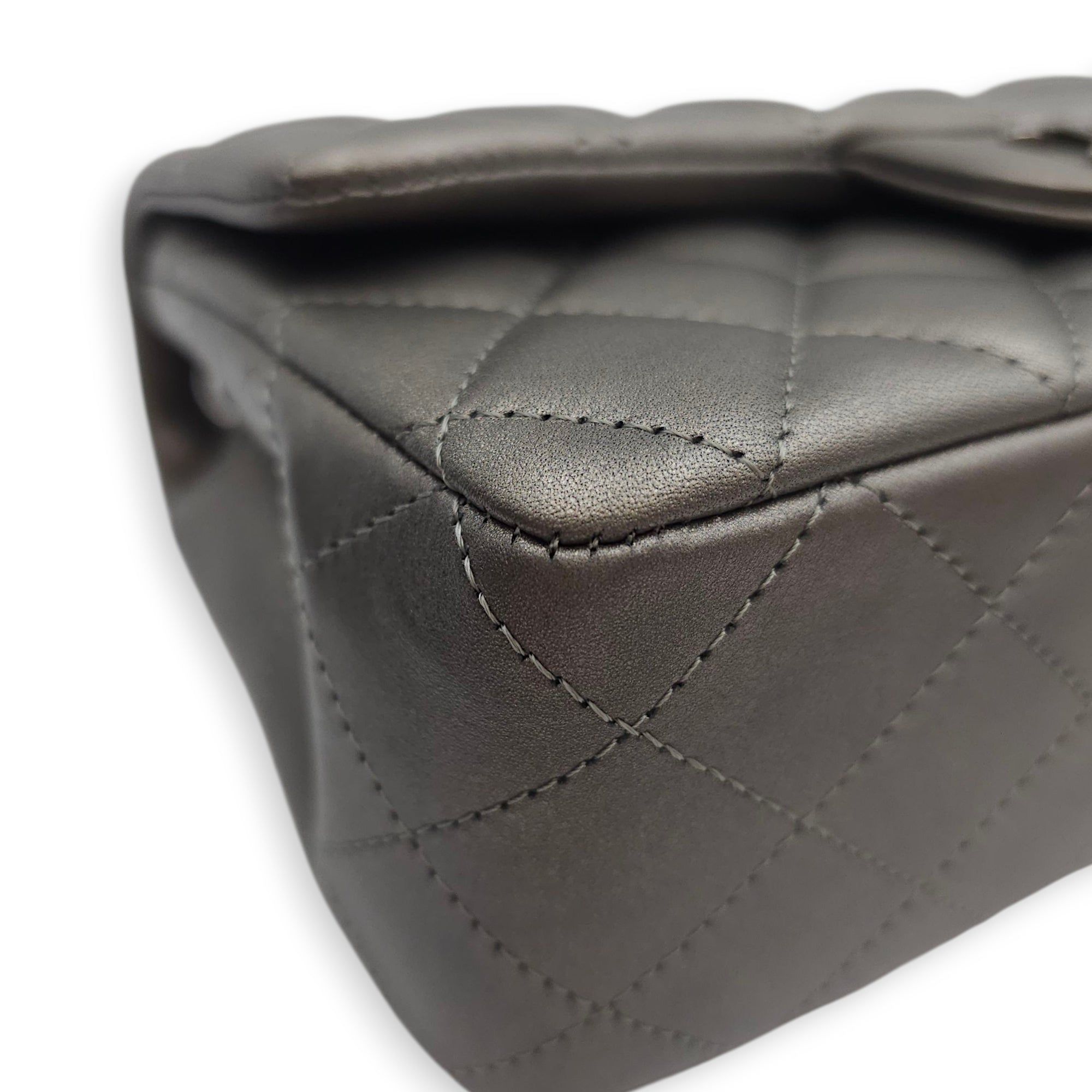 Be the first to review “Quilted Rectangular Mini Grey Flap Bag in Lambskin, Silver hardware”