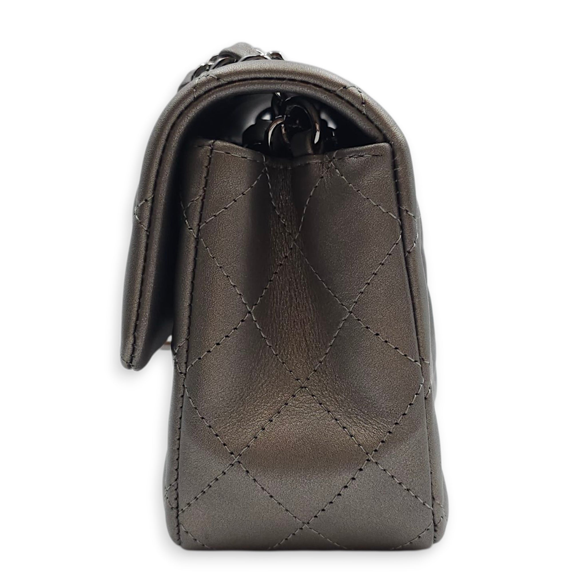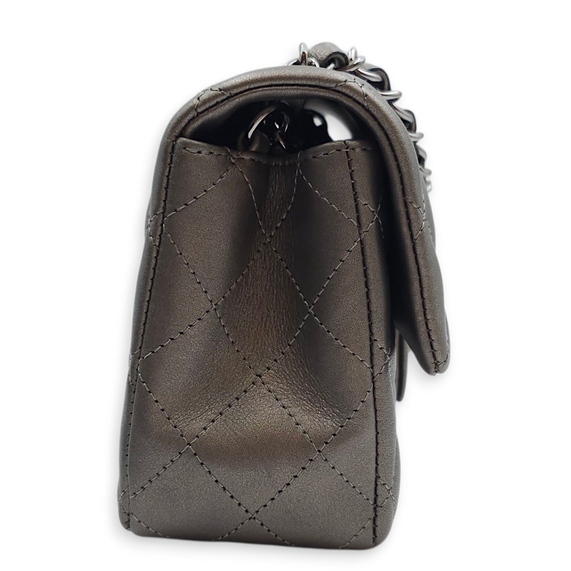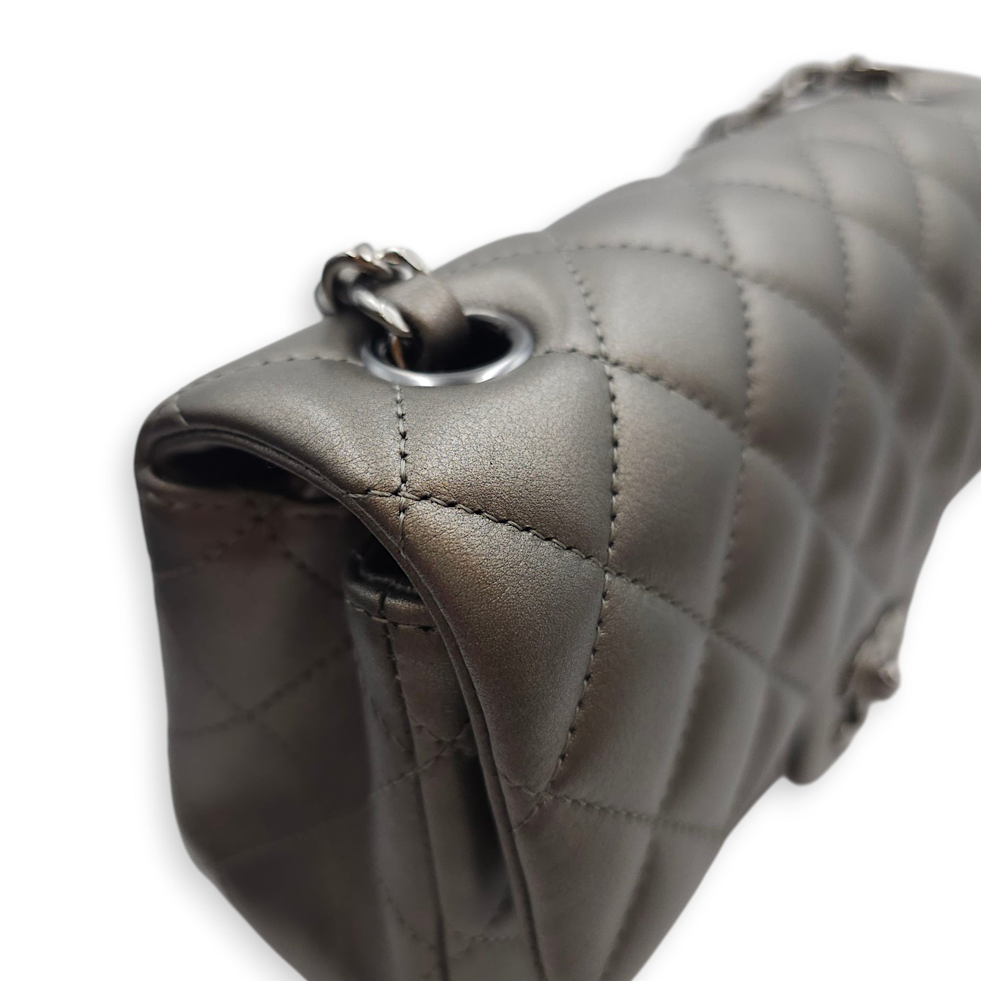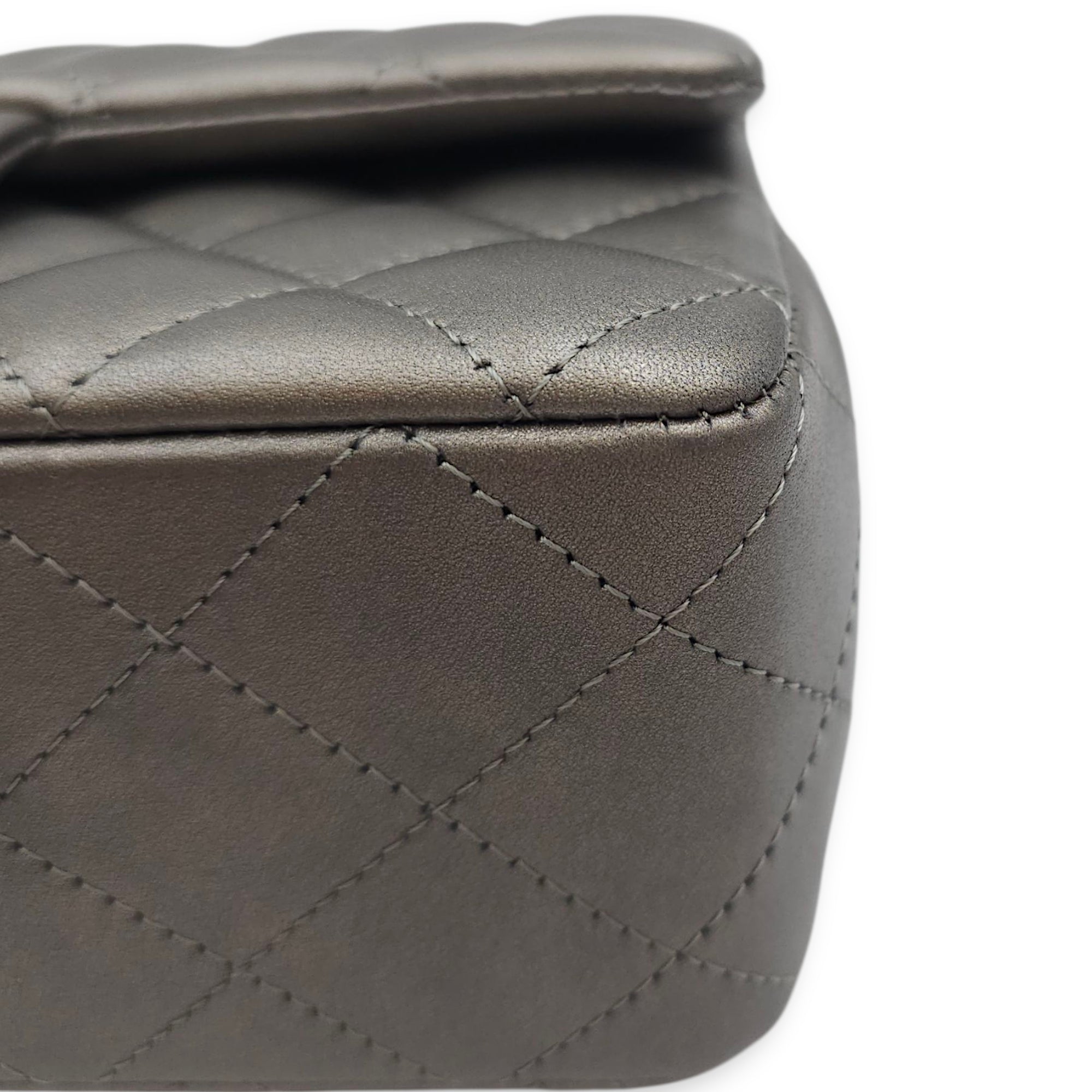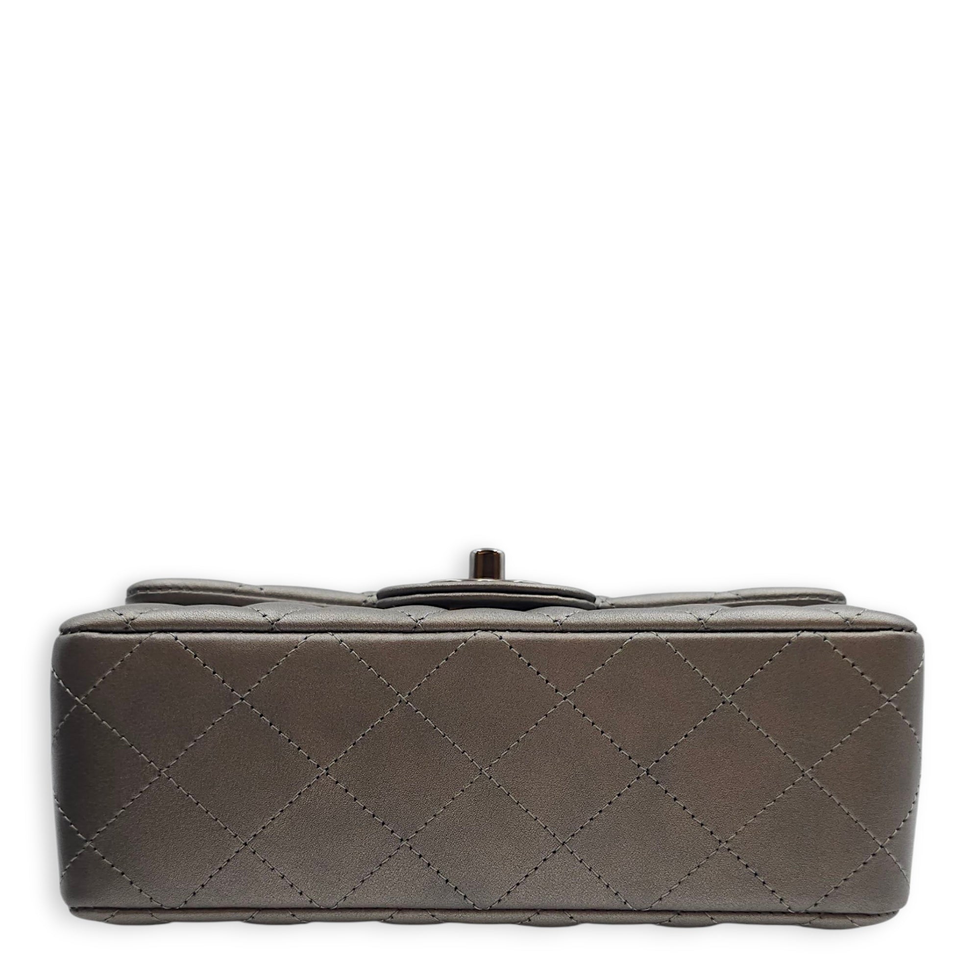 Quilted Rectangular Mini Grey Flap Bag in Lambskin, Silver hardware