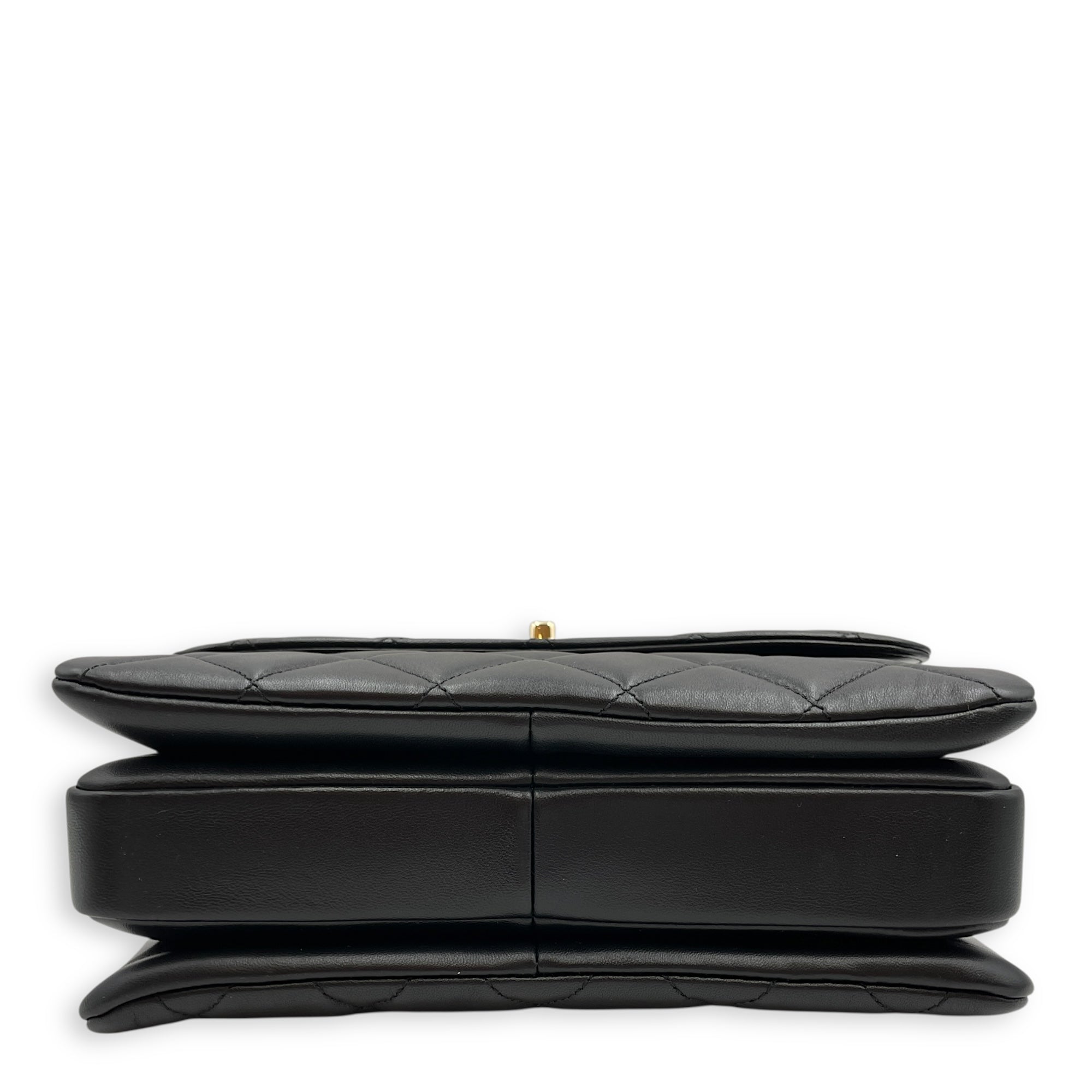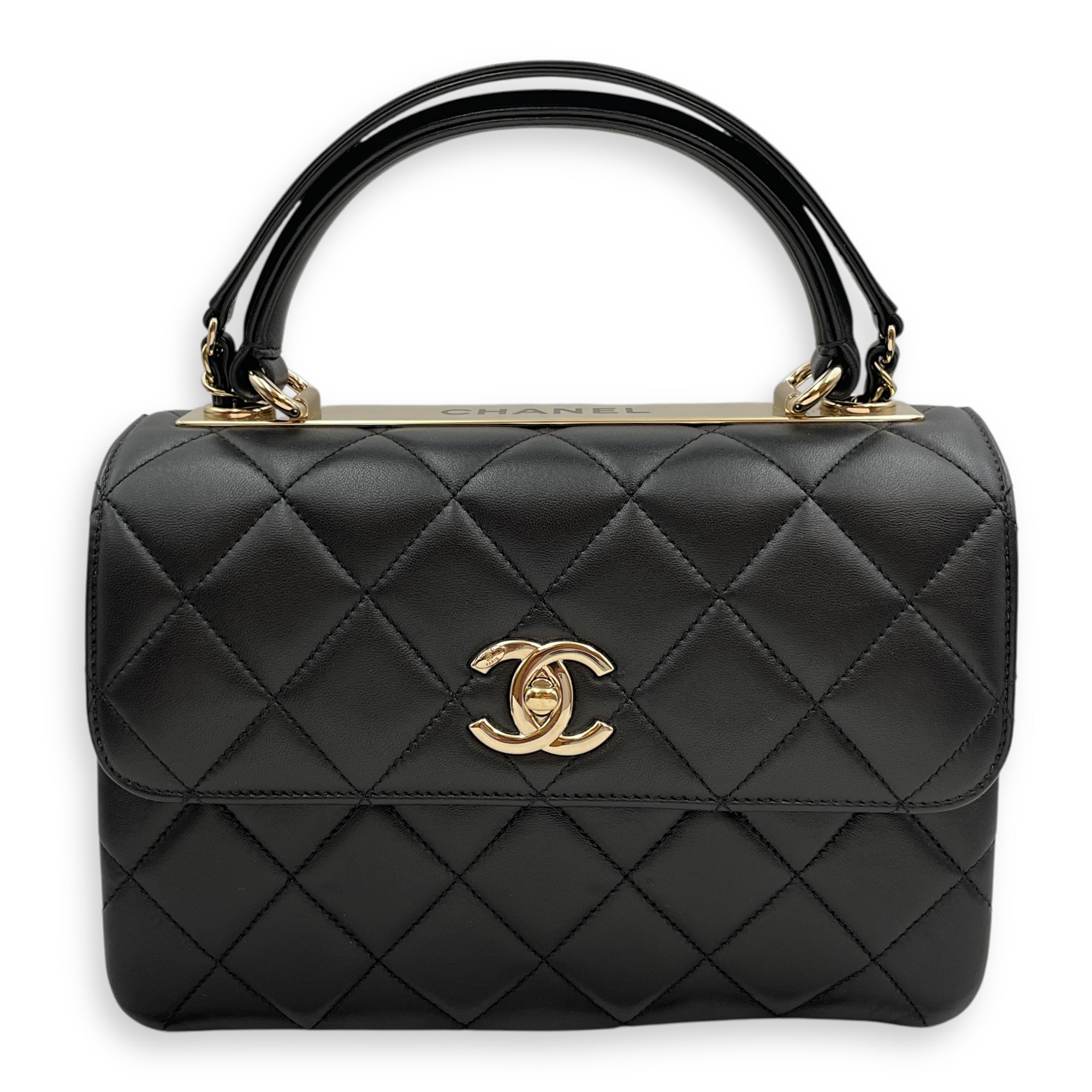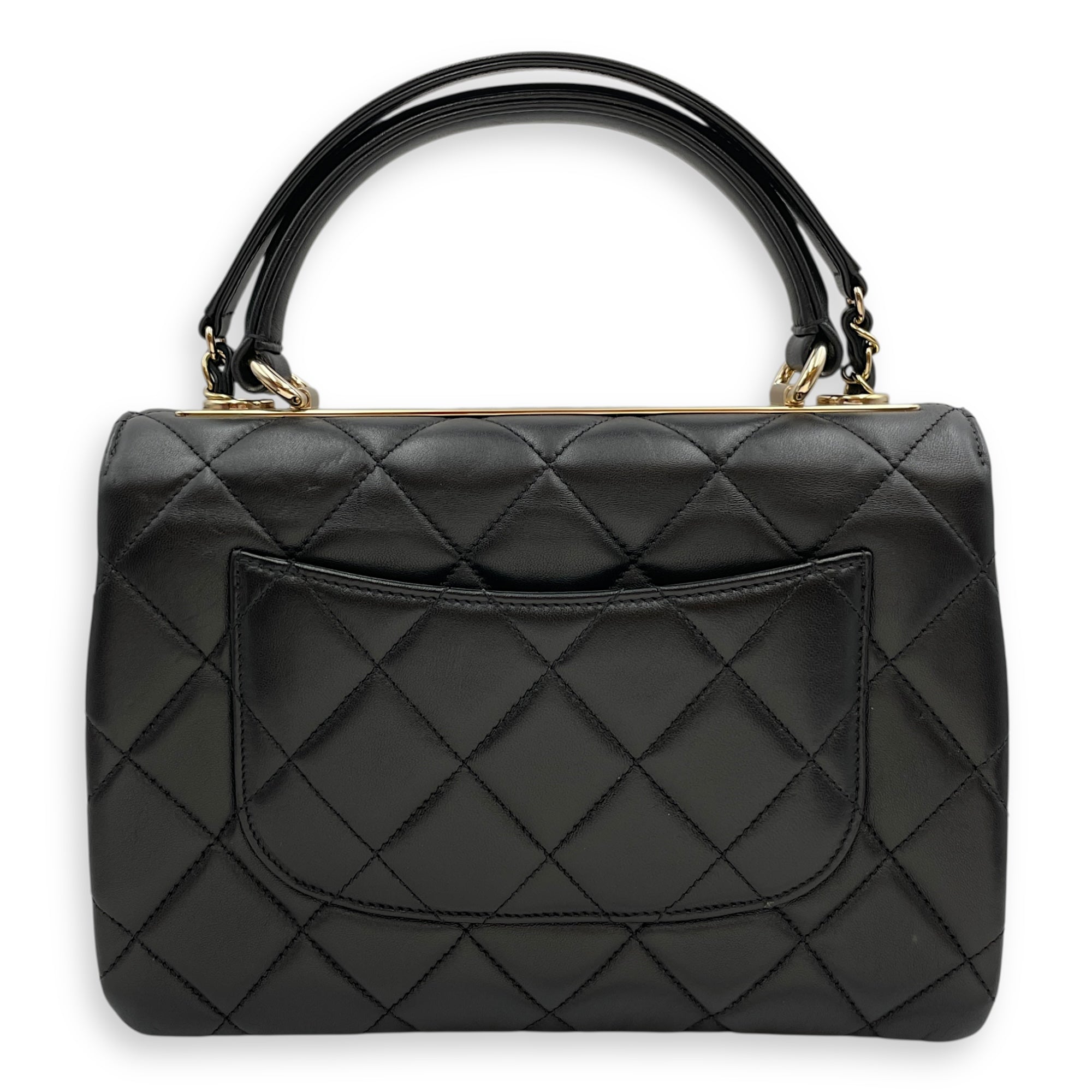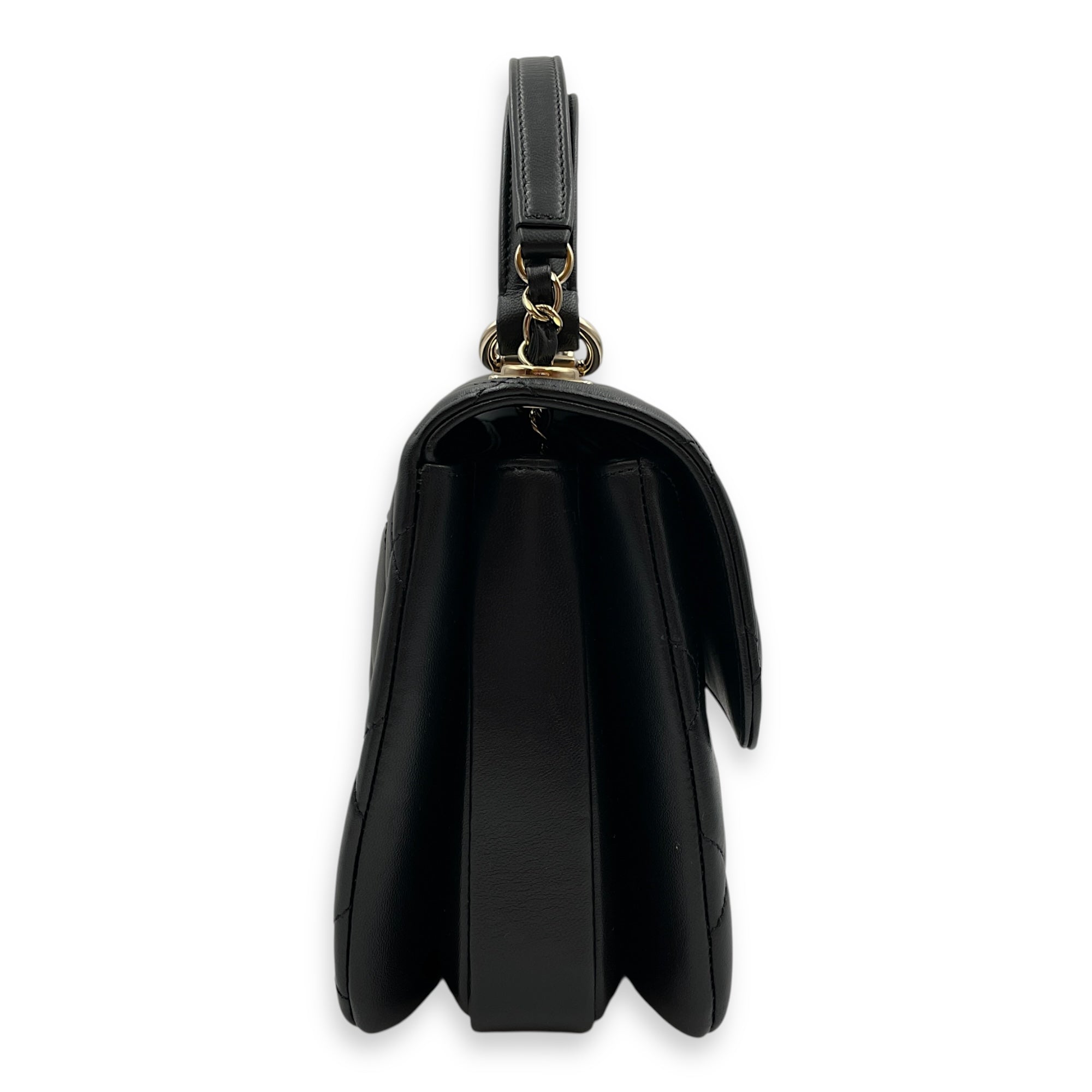 Quilted Trendy CC Black Top Handle in Lambskin, Gold hardware