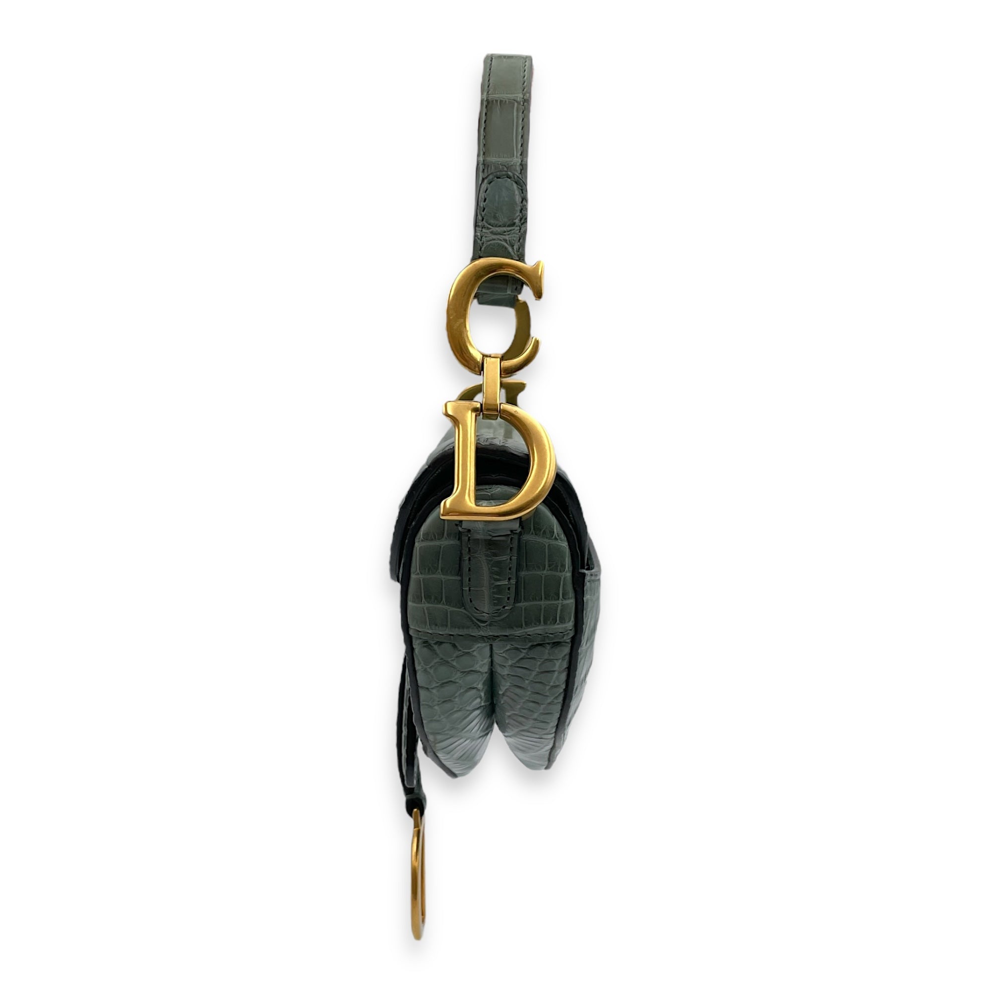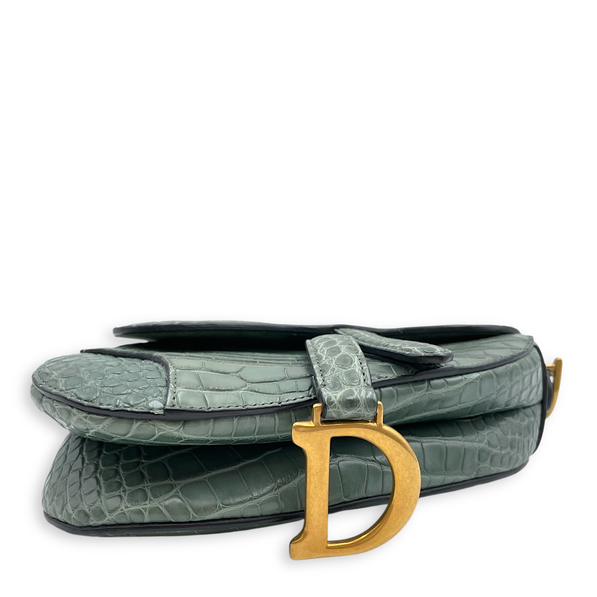 Saddle with Long strap Mini Green Shoulder Bag in Alligator, Gold hardware