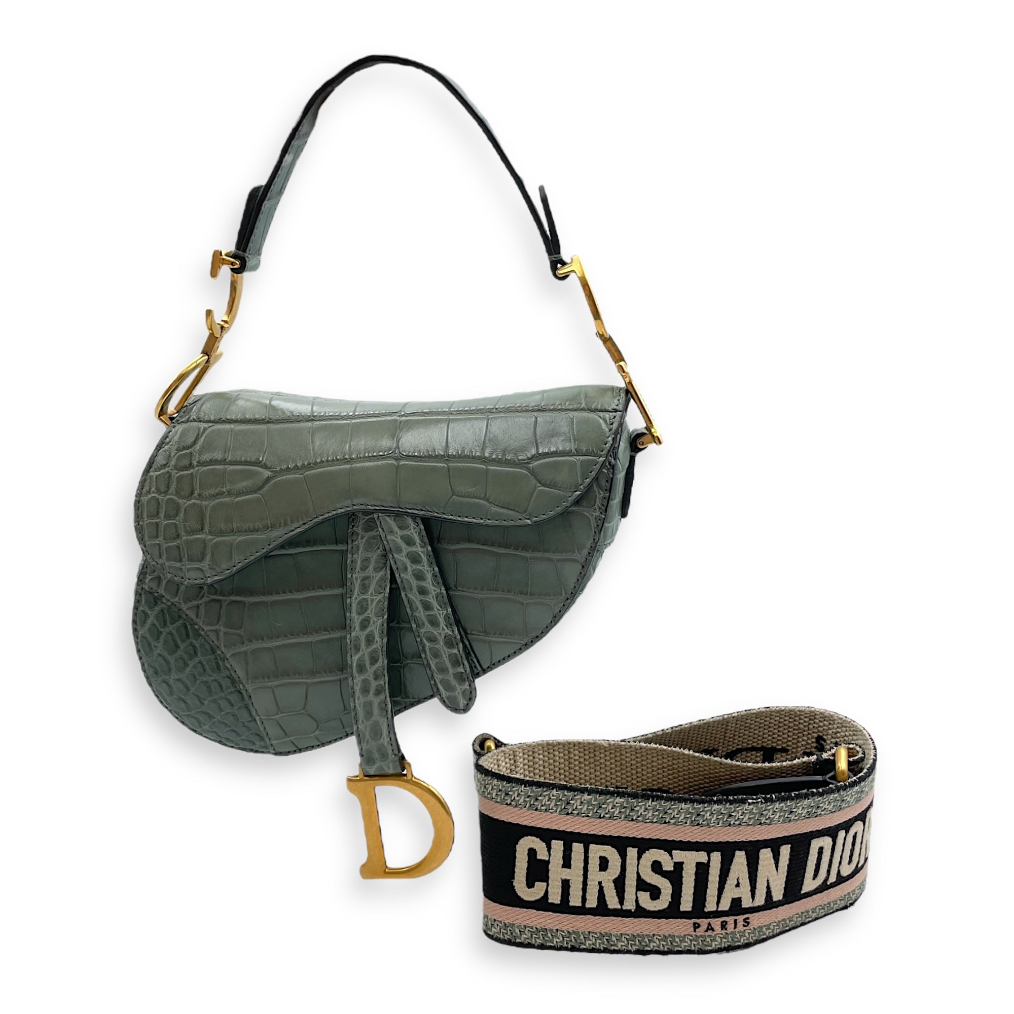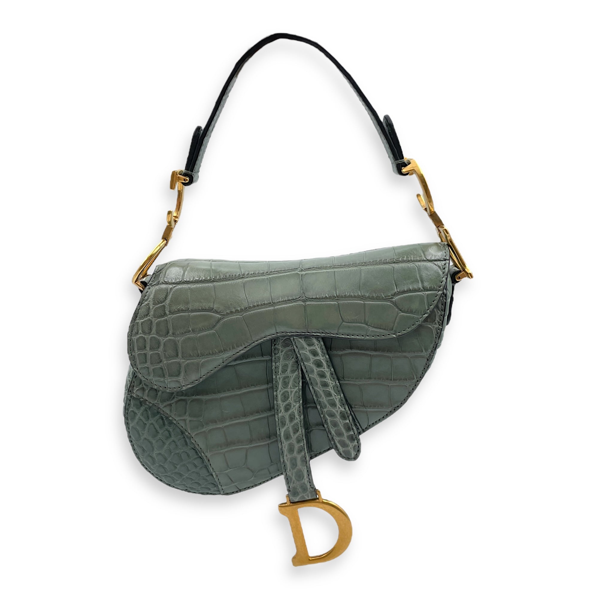 Be the first to review “Saddle with Long strap Mini Green Shoulder Bag in Alligator, Gold hardware”