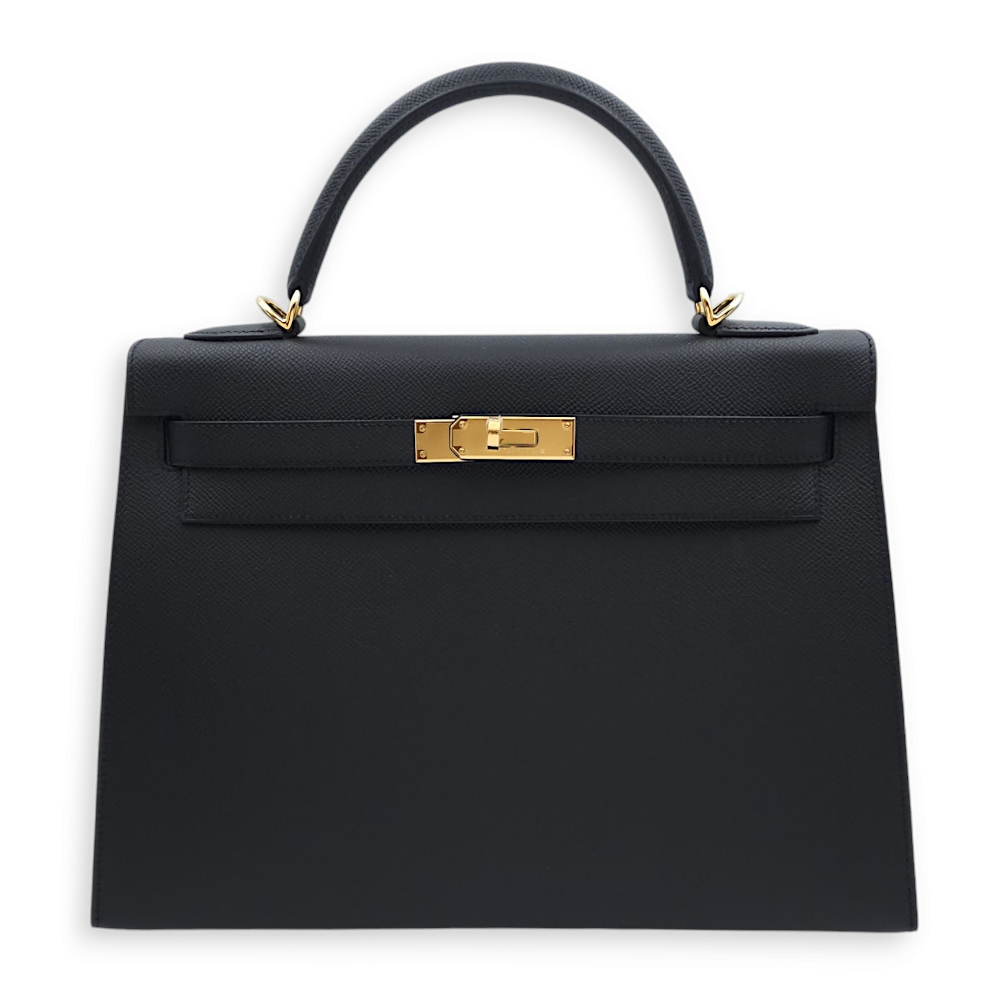 Sellier Kelly 32 Black in Epsom, Gold hardware