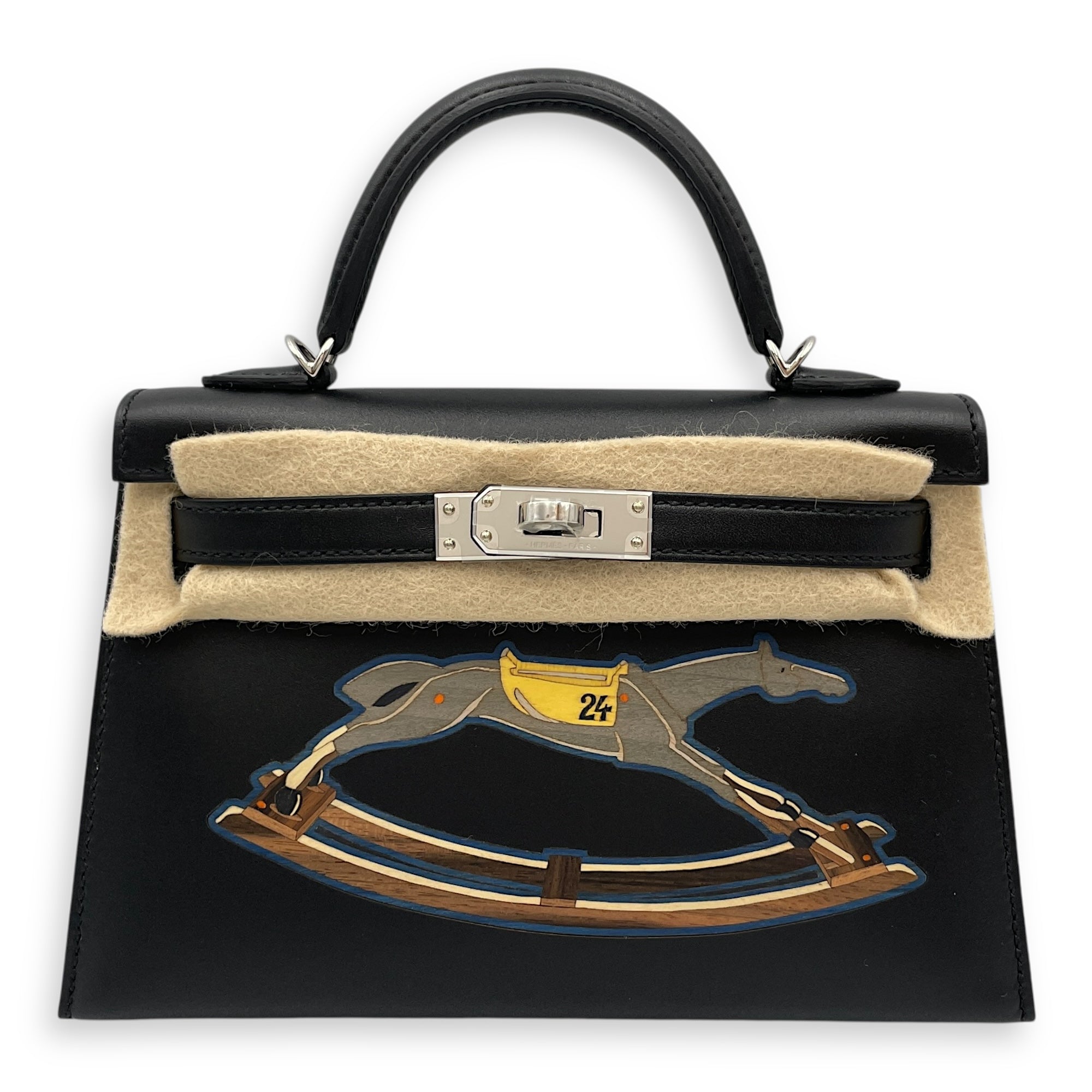 Sellier Kelly Cheval De Bois 20 Black in Tadelakt, Palladium hardware