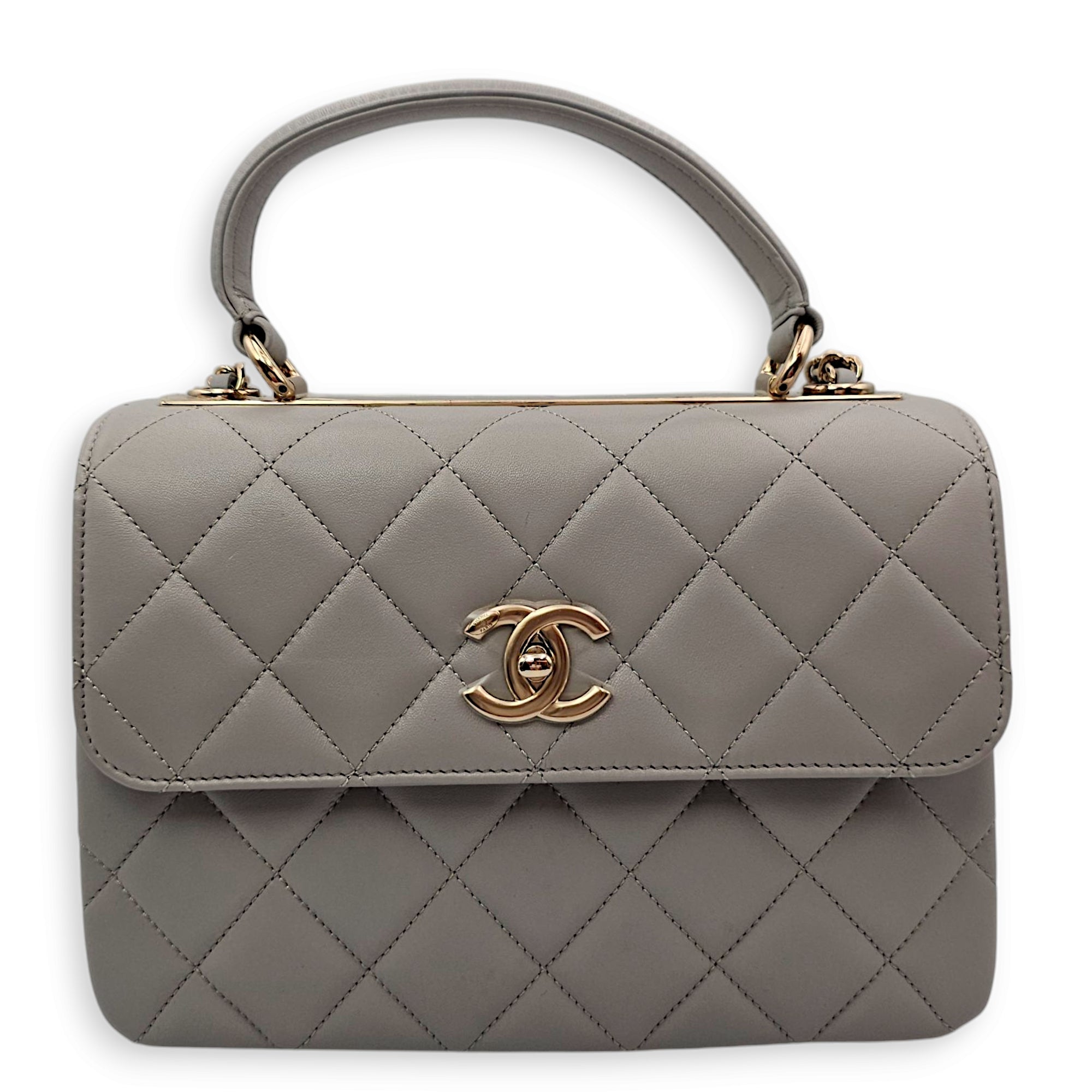 Trendy CC Flap Small Grey Shoulder Bag in Lambskin, Gold hardware