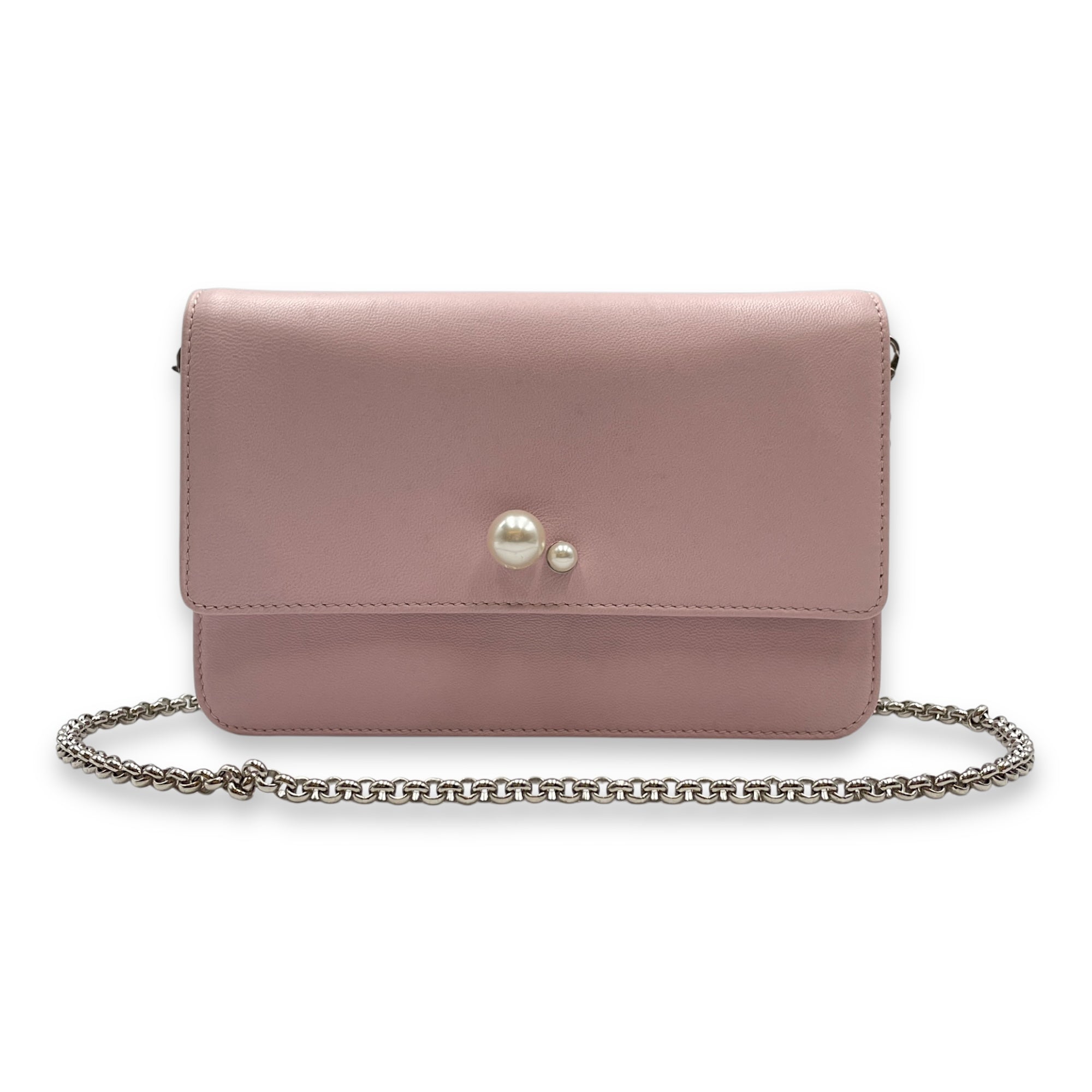 Tribals Promenade Pink Wallet on Chain in Lambskin, Silver hardware