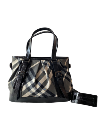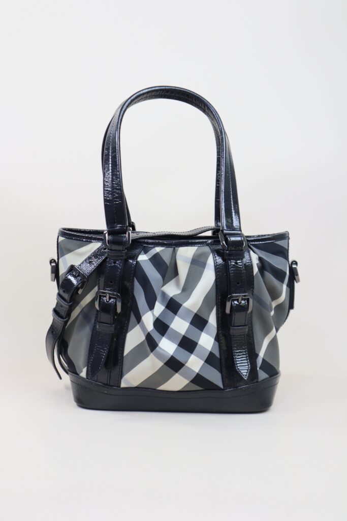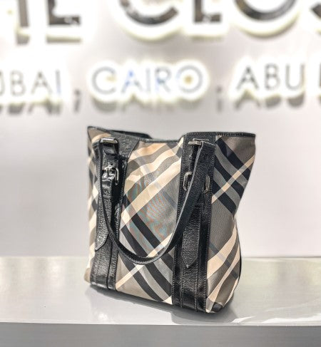 Burberry Black Banner House Check Small Tote Bag W/ Strap