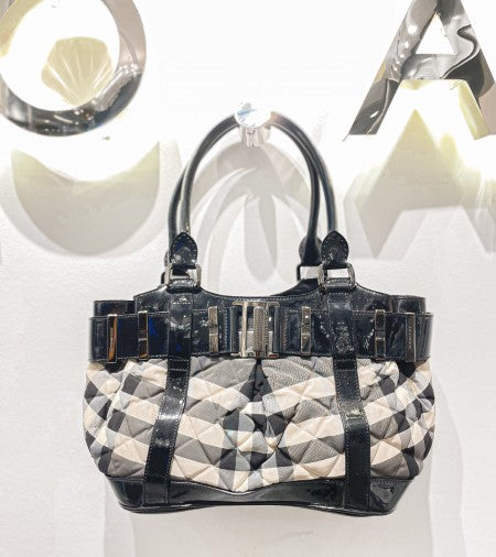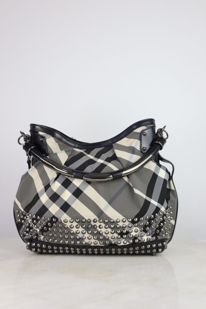 Burberry Black Beat Check Nylon Hobo Bag W/ Shoulder Strap